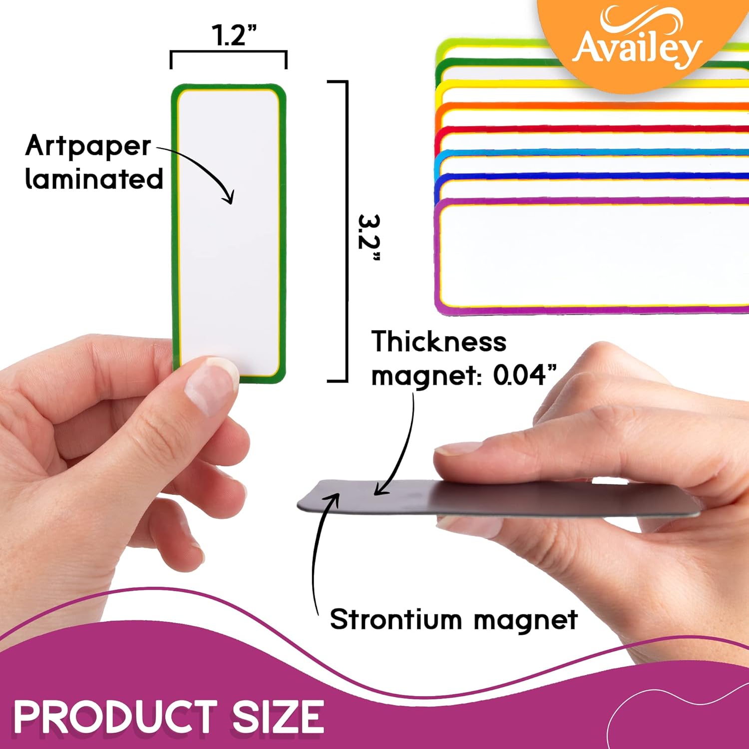 Availey 48 Pieces (3.2 x 1.2") - Colored Border Magnetic Dry Erase Labels - Reusable Strips for Classroom Home Office Garage Refrigerator Blank Writable Erasable Cards Name Tags Students Locker Shelf