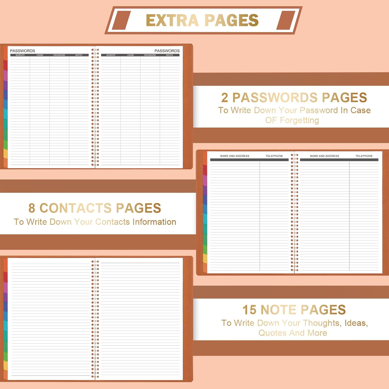 - WHOLE YEAR MODERN & BUSINESS PLANNING – Large planner covers 12 months, from January 2026 to December 2026. Pages measure 8.86" x 11.4", a perfect size for your briefcase or at your desk. Soft leather cover, easy to curl and store, add a touch of modern professionalism chic brown color to your daily routine. Gold durable Wire-O binding allowing lay-flat orientation to create a lasting planner.