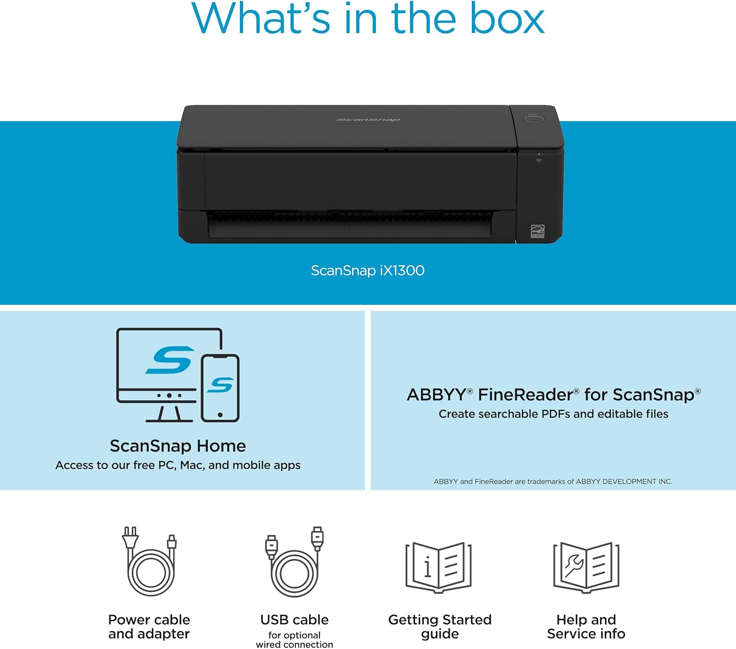 ScanSnap iX1300 Compact Wireless or USB Double-Sided Color Document, Photo & Receipt Scanner with Auto Document Feeder and Manual Feeder for Mac or PC, Black