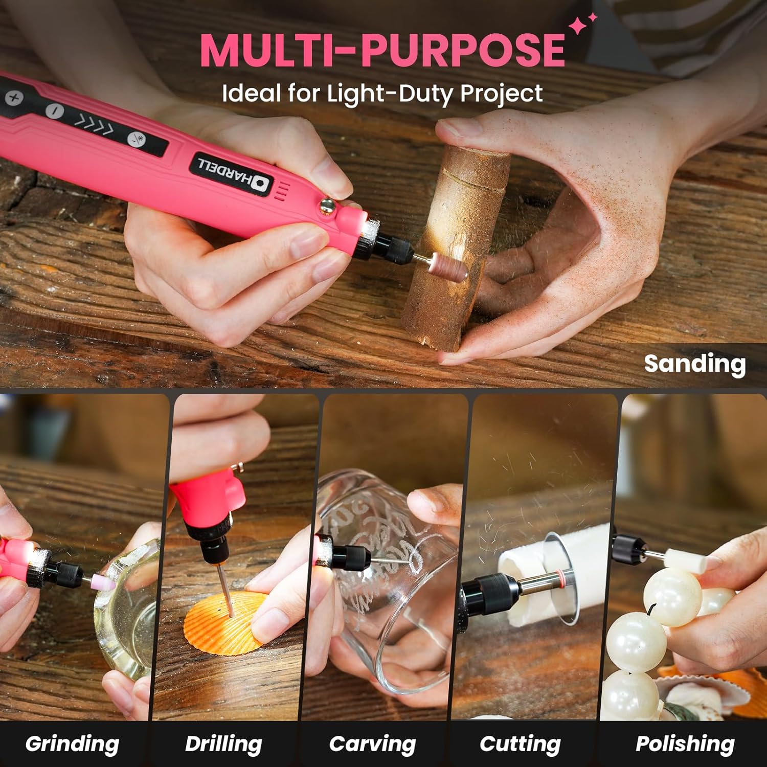 HARDELL Mini Cordless Rotary Tool, 5-Speed 3.7V Rechargeable Rotary Tool Kit with 61 Accessories, USB Charging Multi-Purpose DIY Tool for Sanding, Polishing, Drilling, Engraving, Woodworking