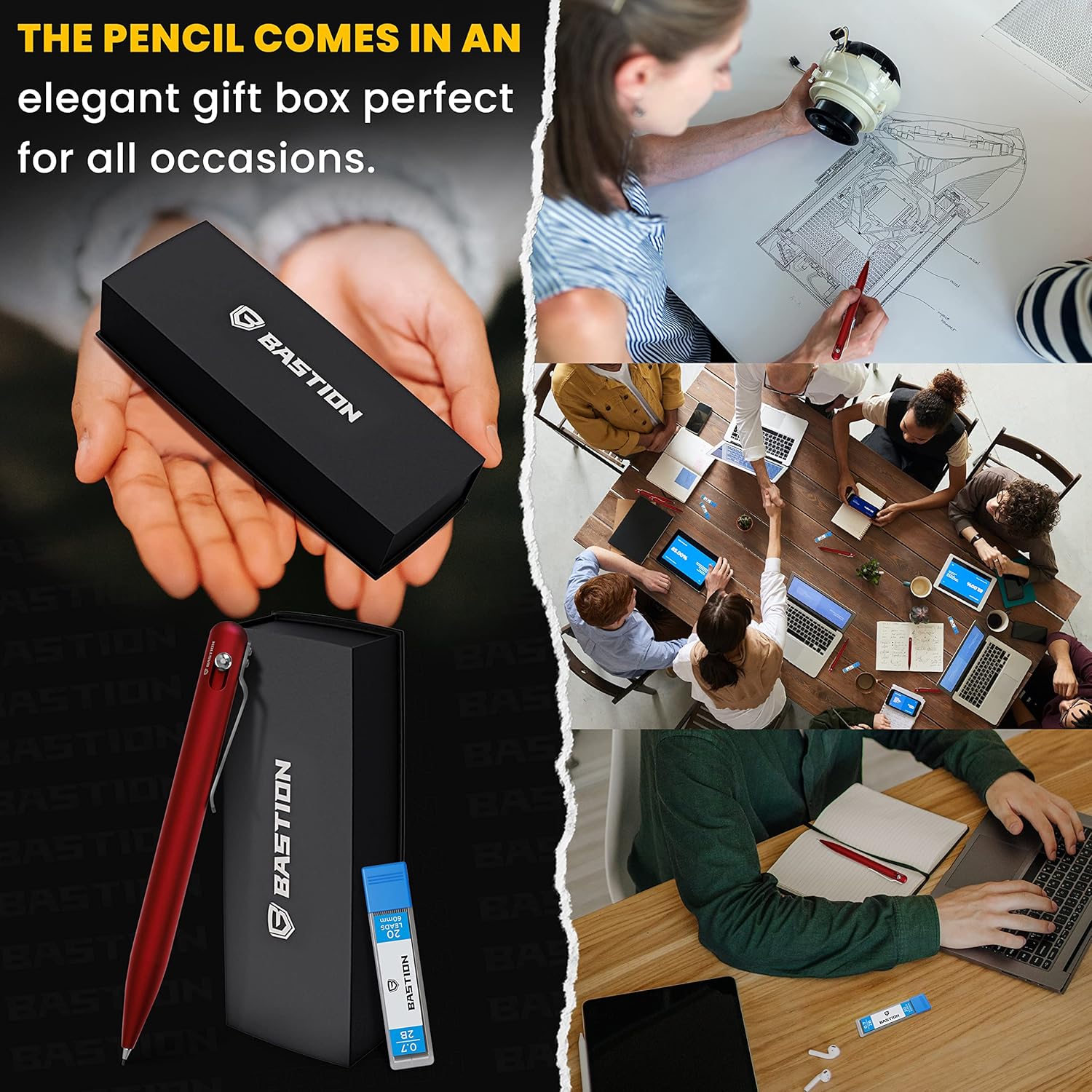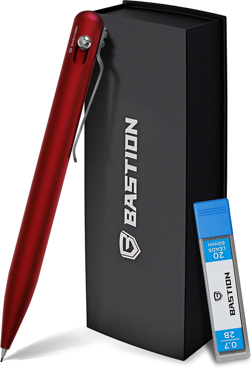 BASTION® Luxury Mechanical Pencil, Professional Lightweight Medium Point Aluminum Pencil for Birthday Gift includes 20 x 0.77mm Lead Refills - Red