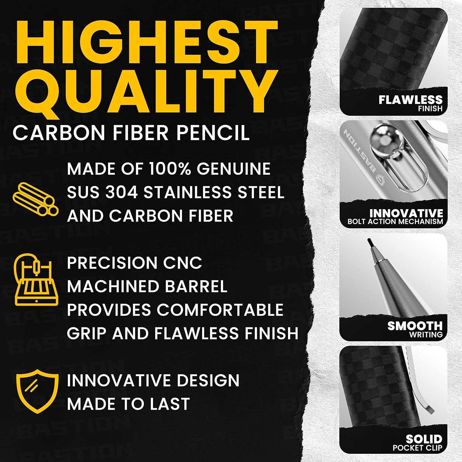 BASTION® Luxury Mechanical Pencil, Professional Medium Point Pencil for Birthday Gift includes 20 x 0.77mm Lead Refills - Carbon Fiber Stainless Steel