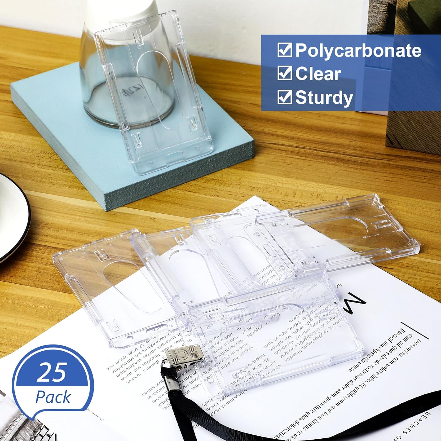 - Reliable material: transparent polycarbonate material, reliable and not easy to break; Built solid and sturdy for daily use; The vertical ID badge holder is clear; You can see the card clearly; The full sleeve back side guards the card and photo from scratching or wear and tear, can be applied for a long time