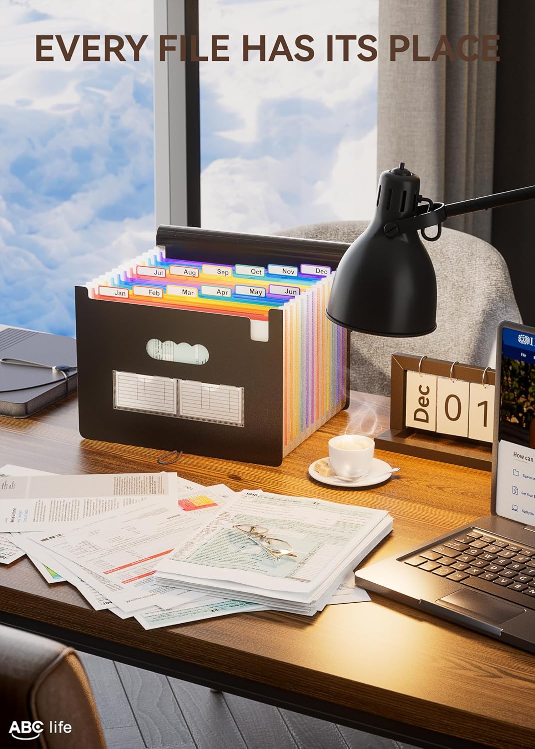 ABC life 12 Pockets Accordion File Organizer, Expanding File Folders, Portable Monthly Bill Receipt Organizer with Colorful A-Z Tabs, Desktop Folders Letter A4 Paper Document Storage for Home Office