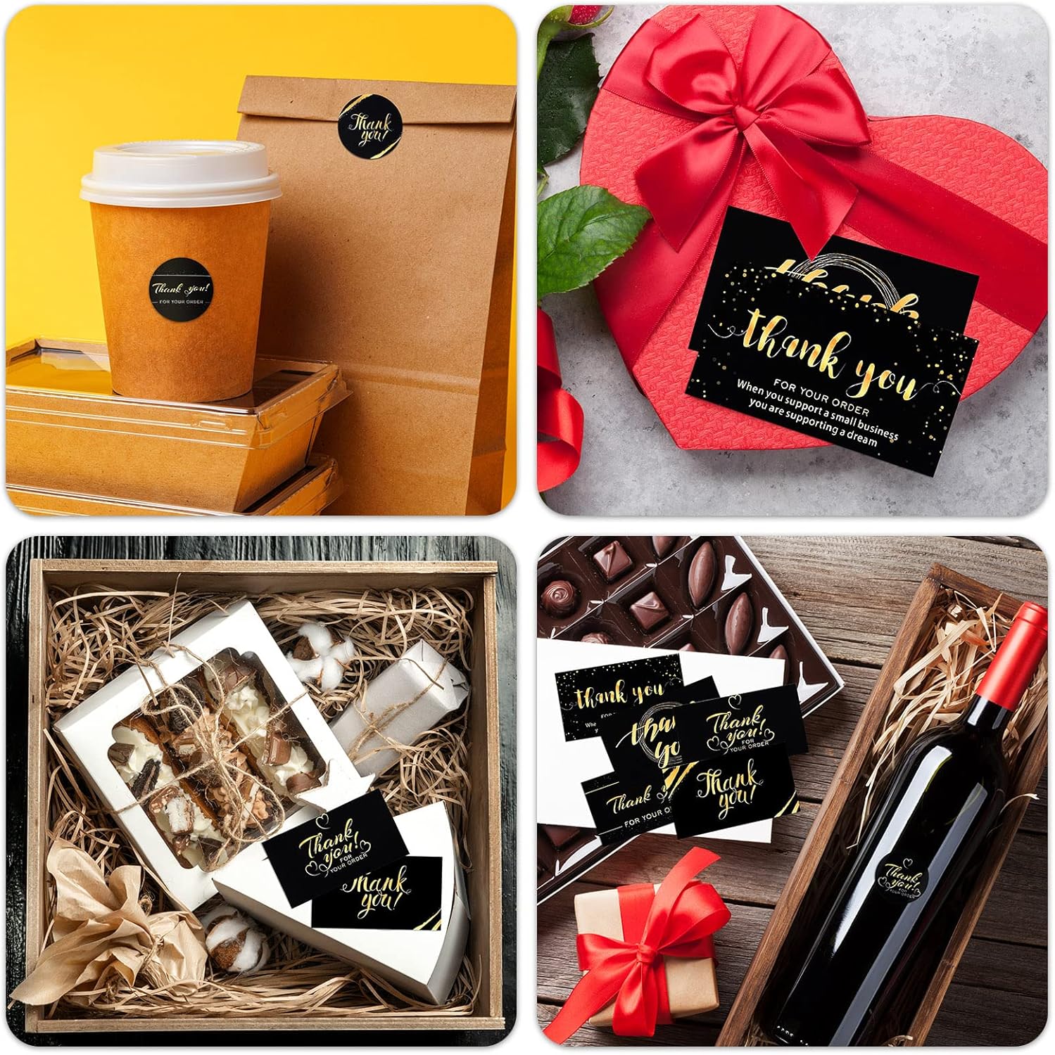- Wide Applications: thank you greeting card and stickers have proper size they are 3.5 x 2 inch/ 9 x 5 cm and 1 inch/ 2.54 cm , which can be applied to express your appreciation to your customers on many occasions, such as Business Christmas, New Year, wedding, and more, suitable for shops, online stores, bakeries, jewelry businesses and so on; Every customer will feel warm and satisfied after receiving them