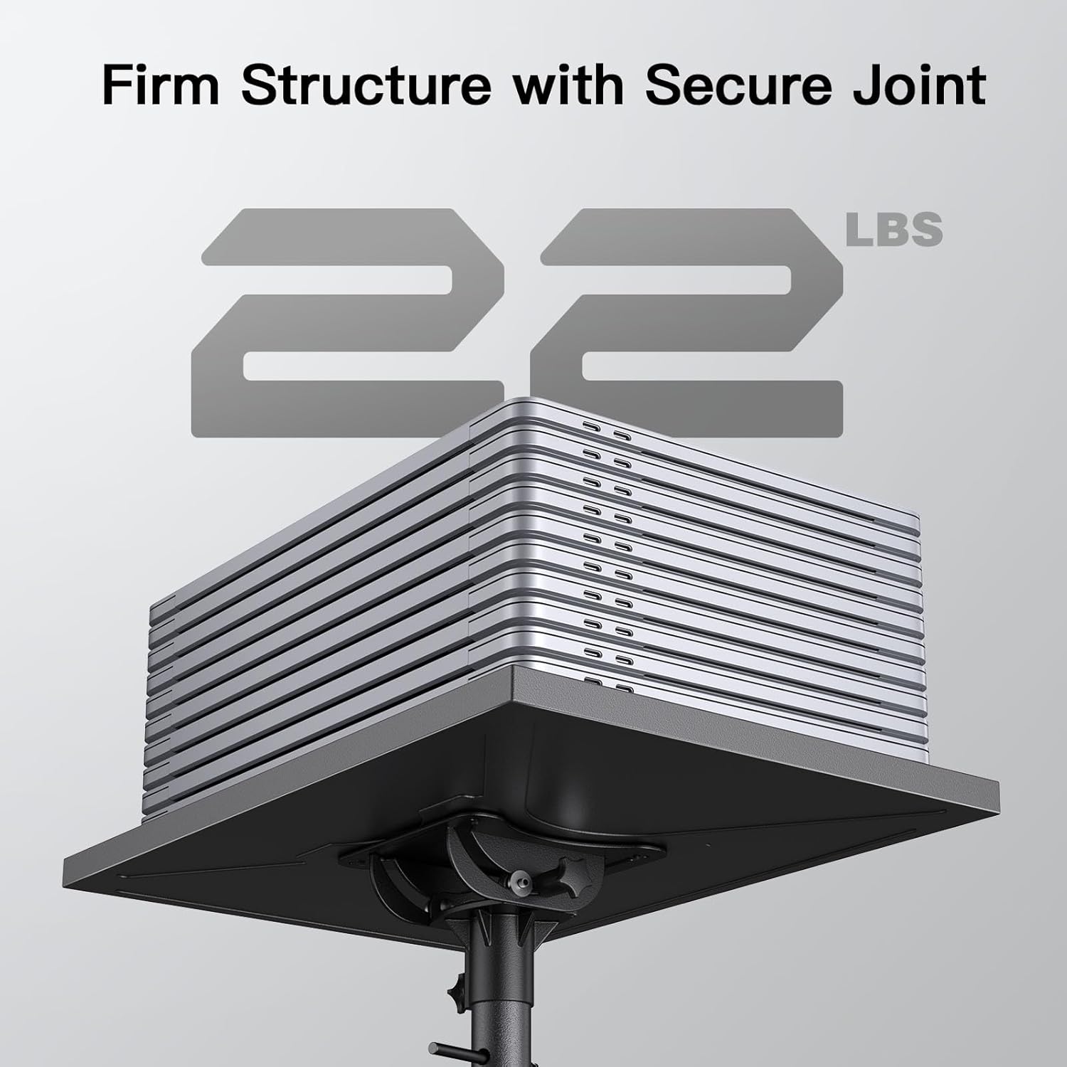 - Max Load 22LBS-This outdoor projector stand is made of sturdy metal and designed with a reinforced tripod stand structure which is capable of supporting up to 22lbs. The tray of this projector tripod stand is 16in(W) x 11in(L) in size and features raised edges that helps secure devices on the plate.