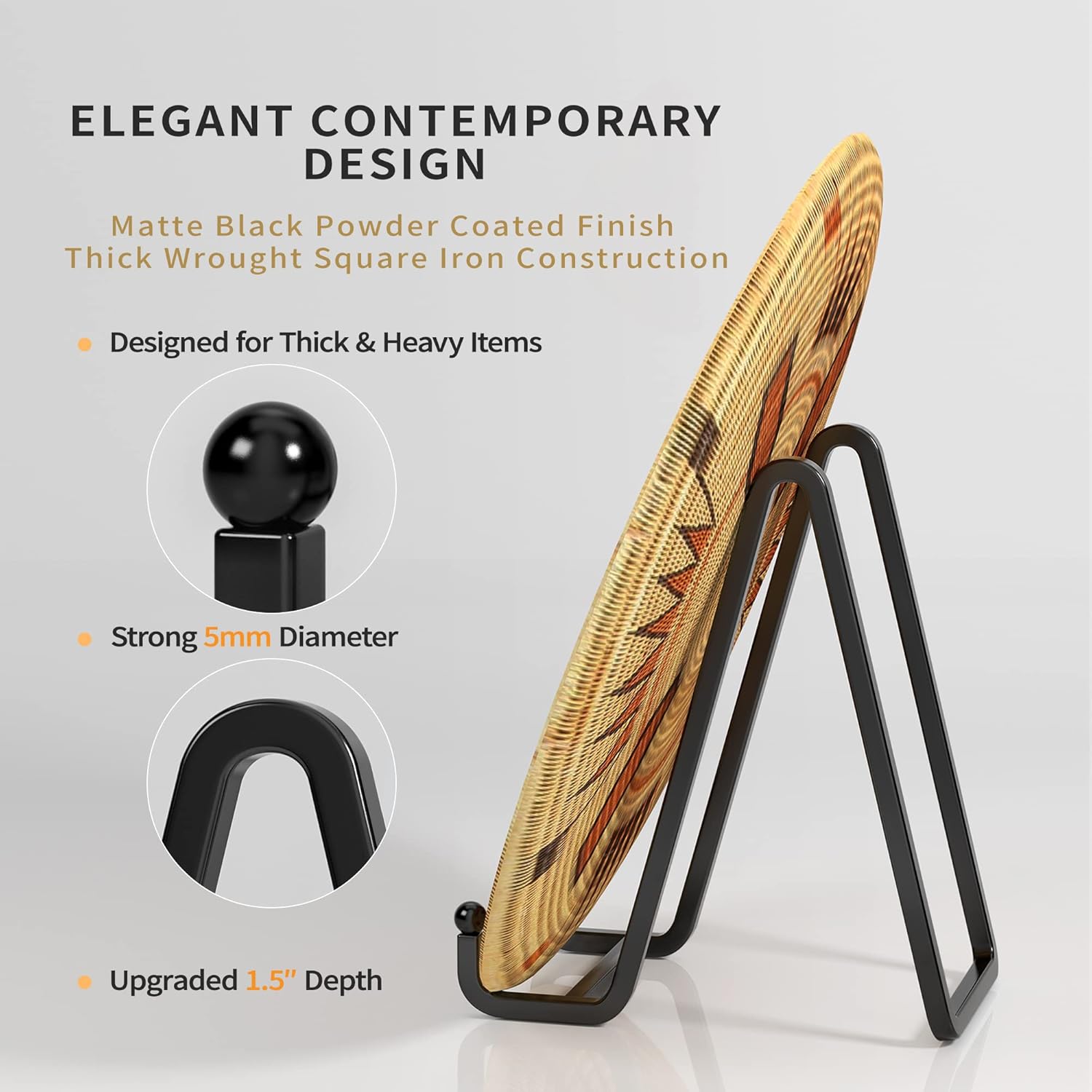 - STRENGTH AND STURDINESS: - Being made of high-quality thick metal square wire, this plate display stands has a wrought iron construction. It is strong enough to firmly hold the decorative plates, cutting boards, tiles, plaques, platters, vinyl records, calendars, canvas, diplomas, cookbooks, and etc.