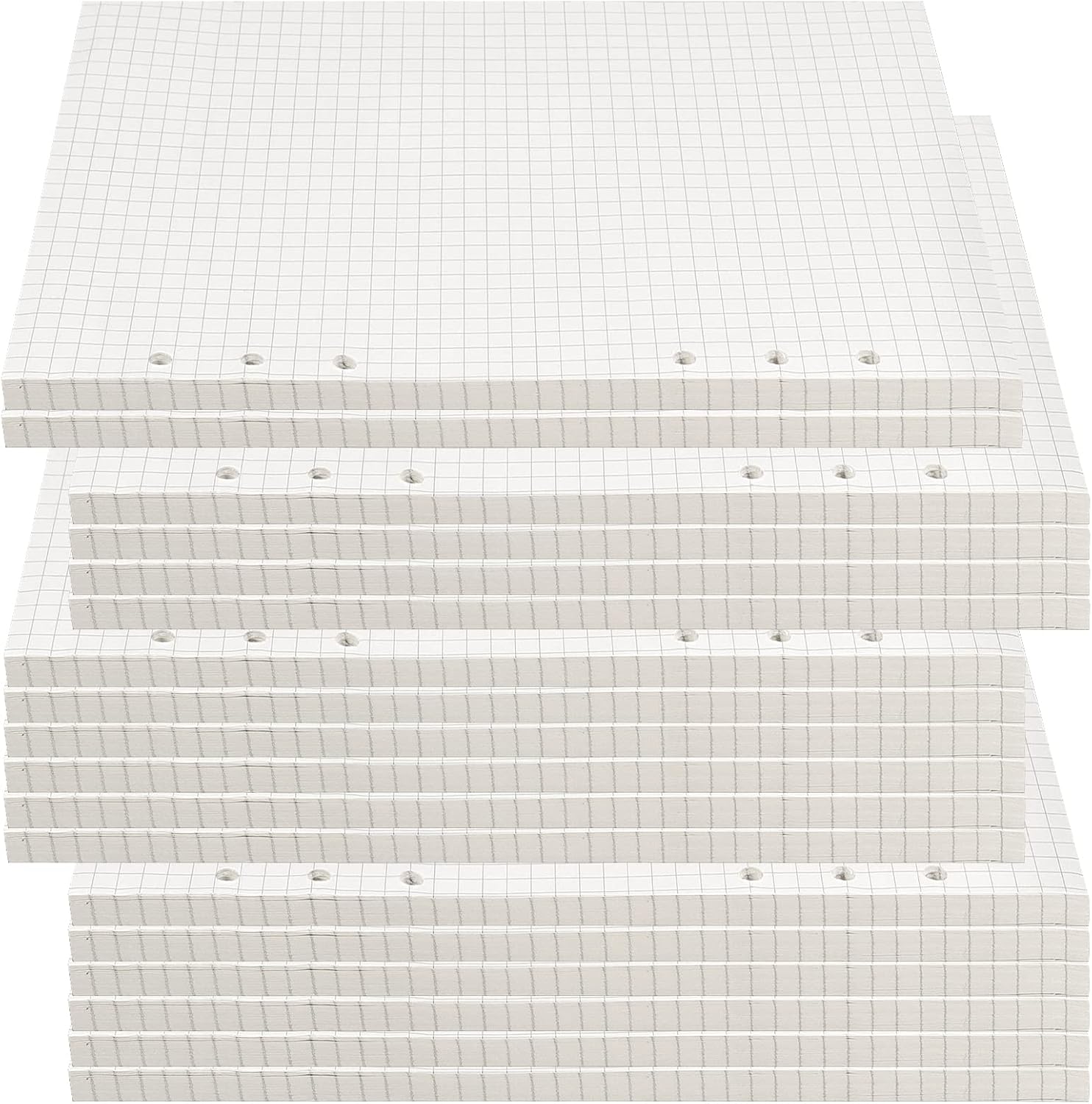 JAPCHET 800 Sheets A5 Grid Refill Paper Graph Paper Squared Grid Planner Insert 6 Hole Punched for 5.6 x 8.3 Inch Notebook, 100 Gsm