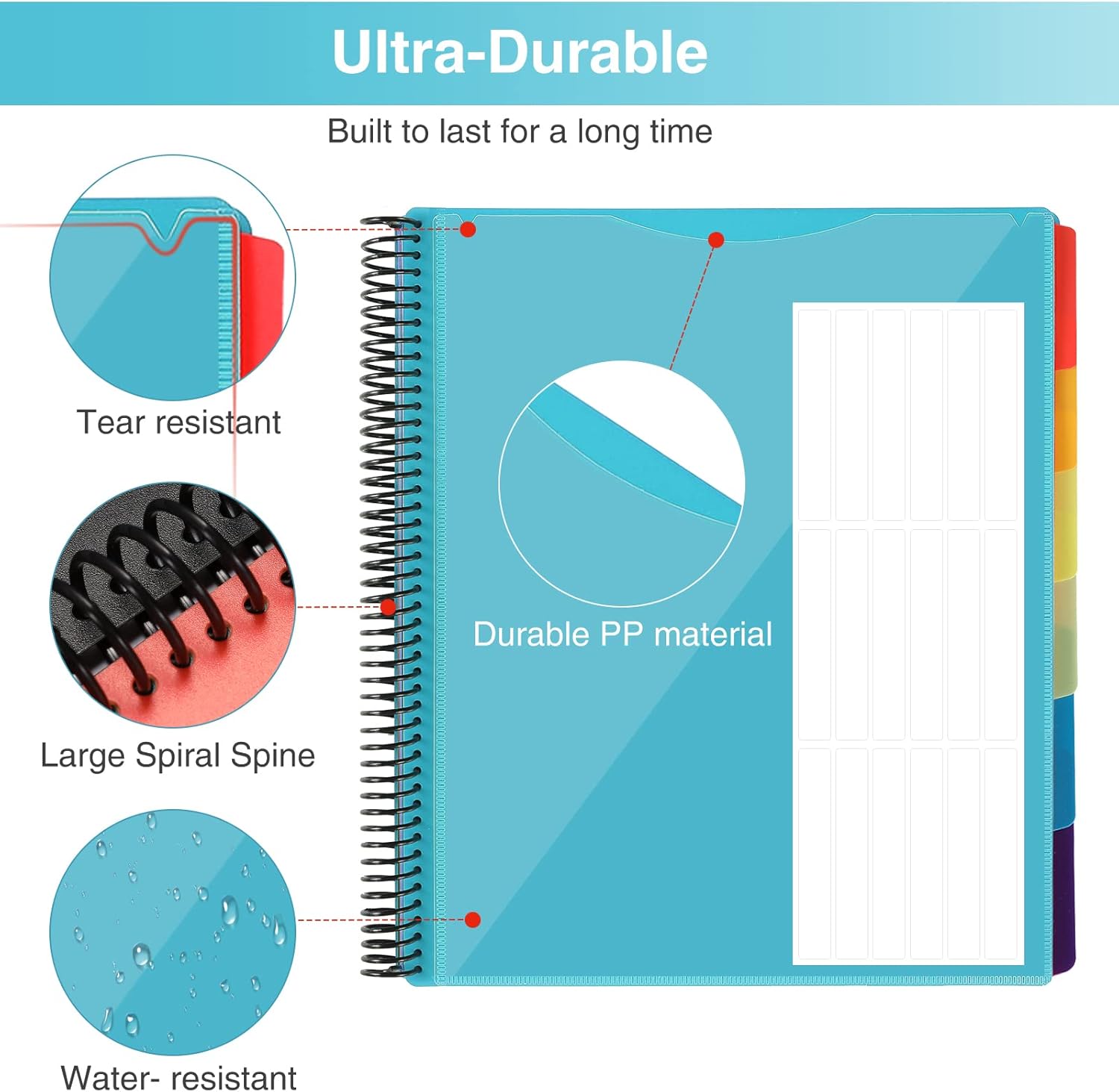 - Sturdy & Durable Spiral Binder: Made of sturdy polypropylene, tear-proof, water-resistant, archival safe, and PVC free. The bigger binder ring greatly improves its long-lasting performance, allowing you to insert more papers, lay flat and stay open.