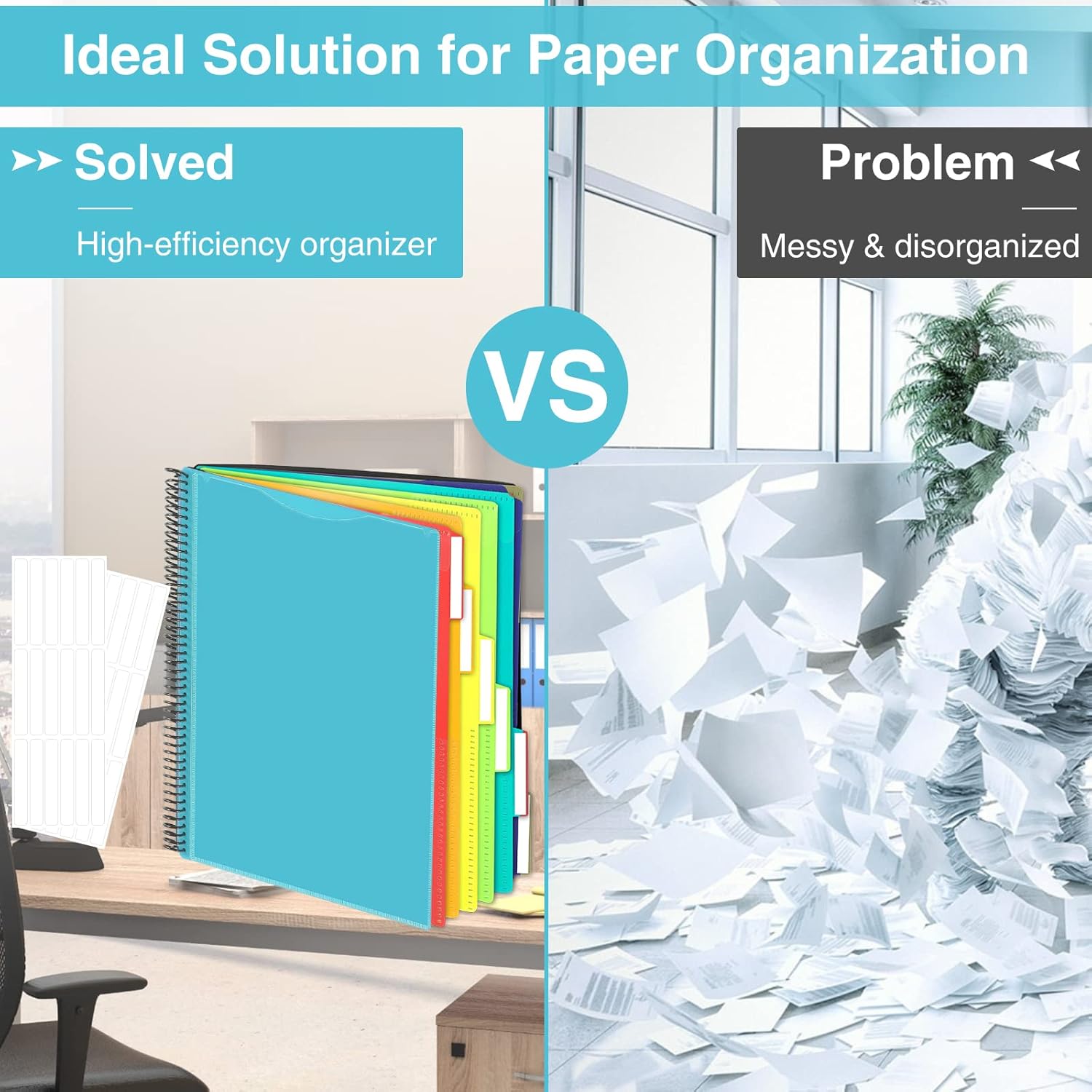 - High-efficiency Paper Organizer: 12 pockets, 6 dividers with 1/6-cut assorted tabs in bright colors, and 36 blank viewable sticky labels. Super handy for quick referencing. Perfect for categorizing and organizing projects, homework, assignments, or other important documents.