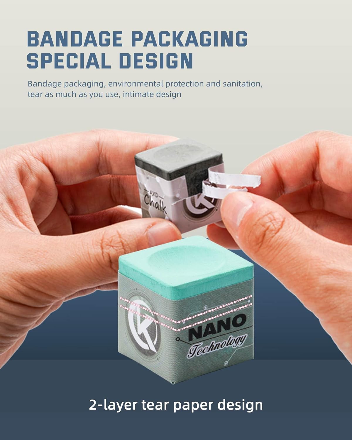 - Nano Technology: KONLLEN pool hand chalk utilizes revolutionary nano-materials, ensuring an ultra-fine texture with superior adhesion. It resists flaking and spreading, making it more environmentally friendly and healthier. With KONLLEN, you can achieve the best feel and performance in any condition.