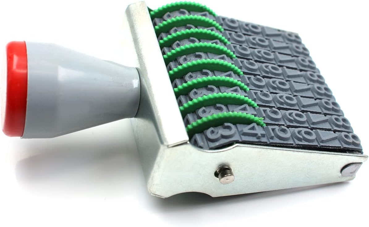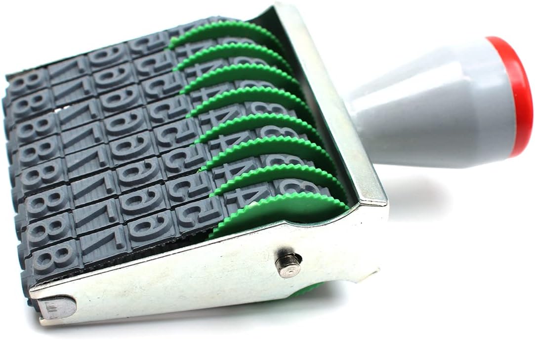 - Nubber stampļ¼ Material : Metal/Plastic. Sizeļ¼Length :100 mm/3.93 in, Width:58 mm/2.28 in,High:25 mm/0.98 in, Character : Width:5 mm /0.19 in,Height:8 mm/0.31 in, Color : Gray black, Weight: 70 g, Package Content : 1 X Numbering Stampļ¼Without ink Requires a separate ink padļ¼.