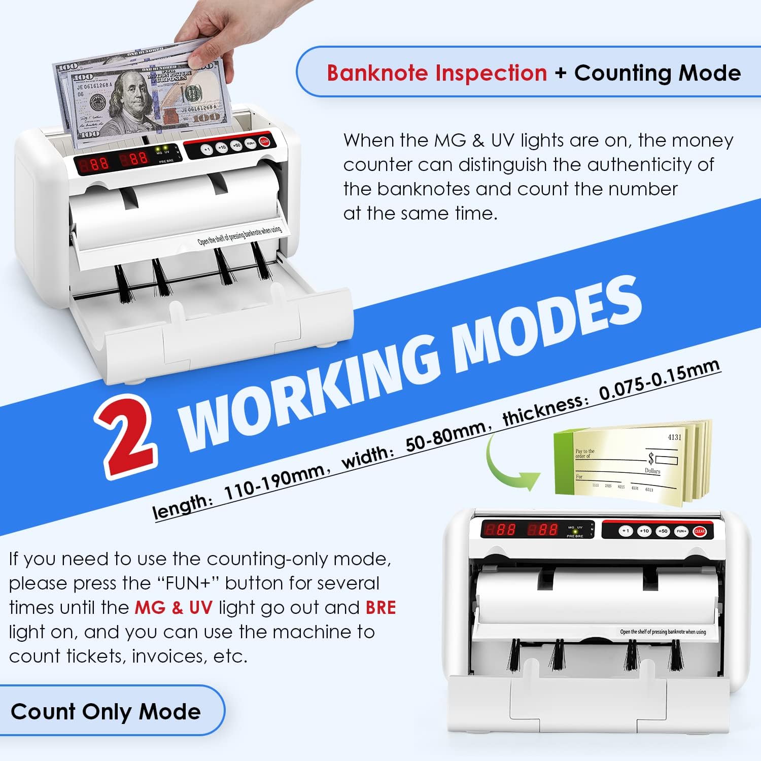 - 800 pcs/min- Our portable money counter is a smaller, lighter but faster machine which can save you valuable time with a counting speed of 800 sheets per minute.
