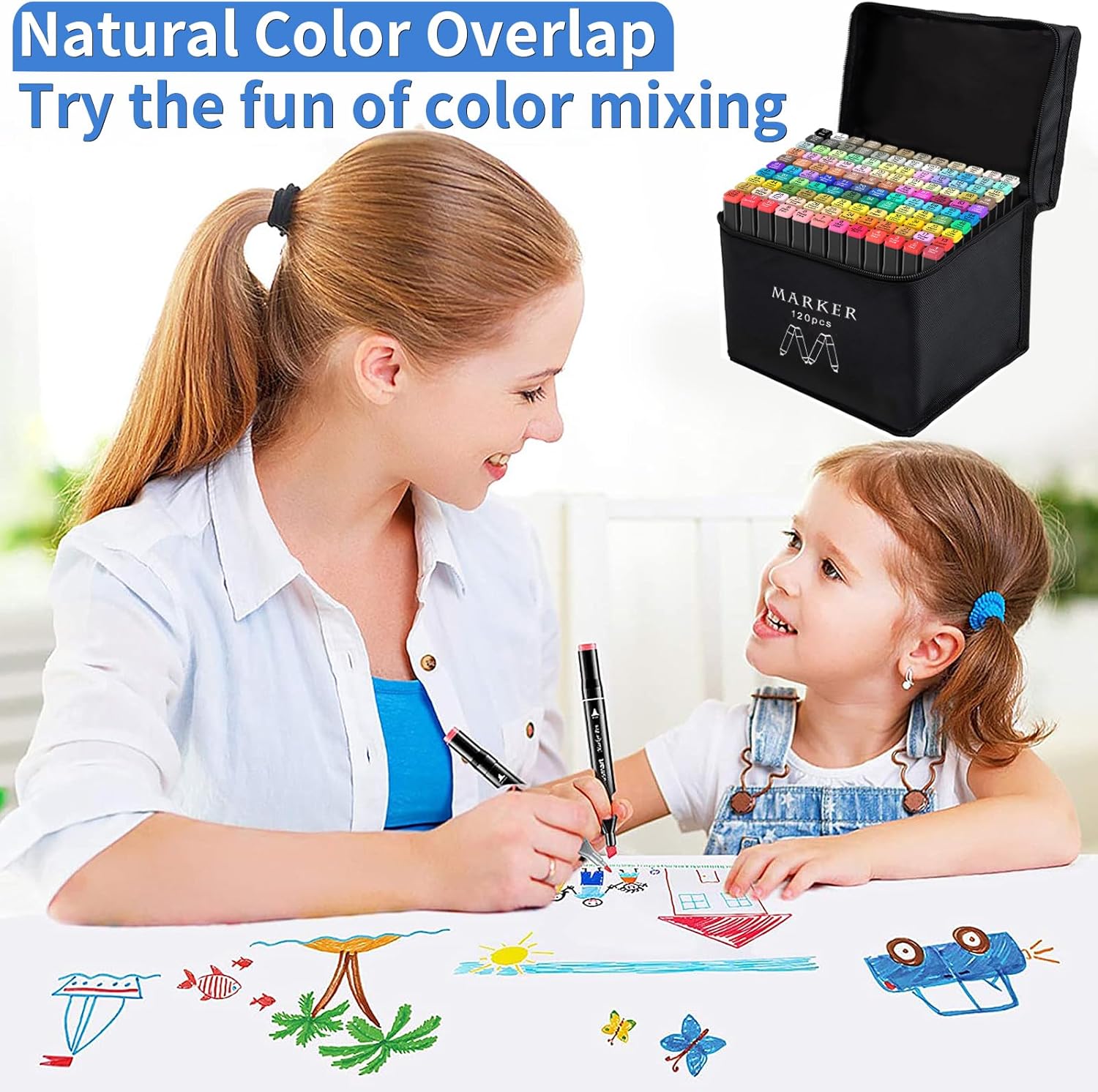 - 【DUAL TIP MARKERS】Banral 120 Colors art markers set, Broad tip (approx. 6mm) for quickly coloring large areas and fine tip(approx. 1mm) for precise highlighting and underlining. Allowing you to write in both thin and thick lines, providing great versatility and immerse yourself in art. NOTE: Because they are alcohol based markers like all other brand markers, they will bleed into regular coloring paper, except very thick paper, marker paper.