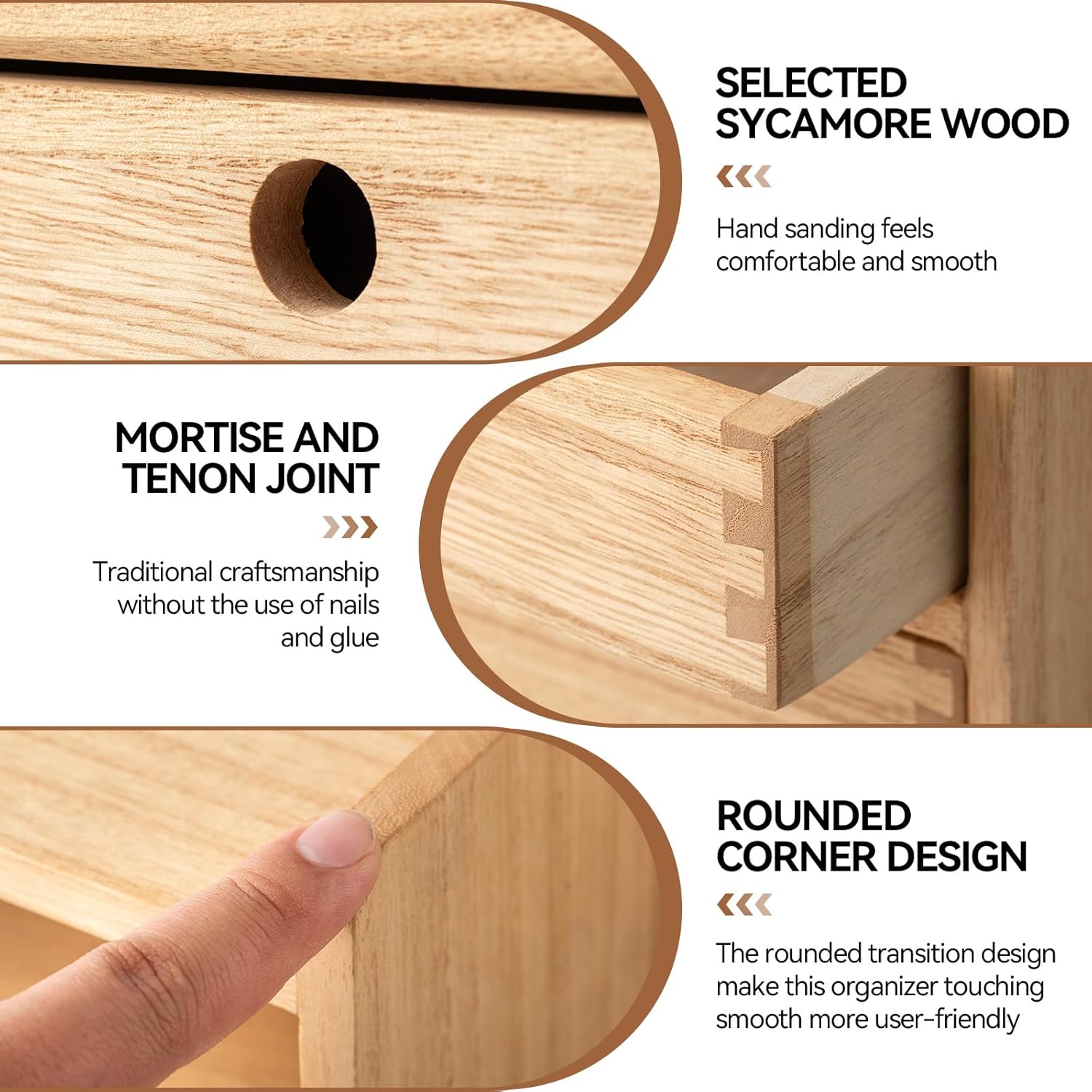 - [EXQUISITE WORKMANSHIP]: The desk organizer is made of selected real wood, the texture is clear and natural, exquisite workmanship,hand polishing.