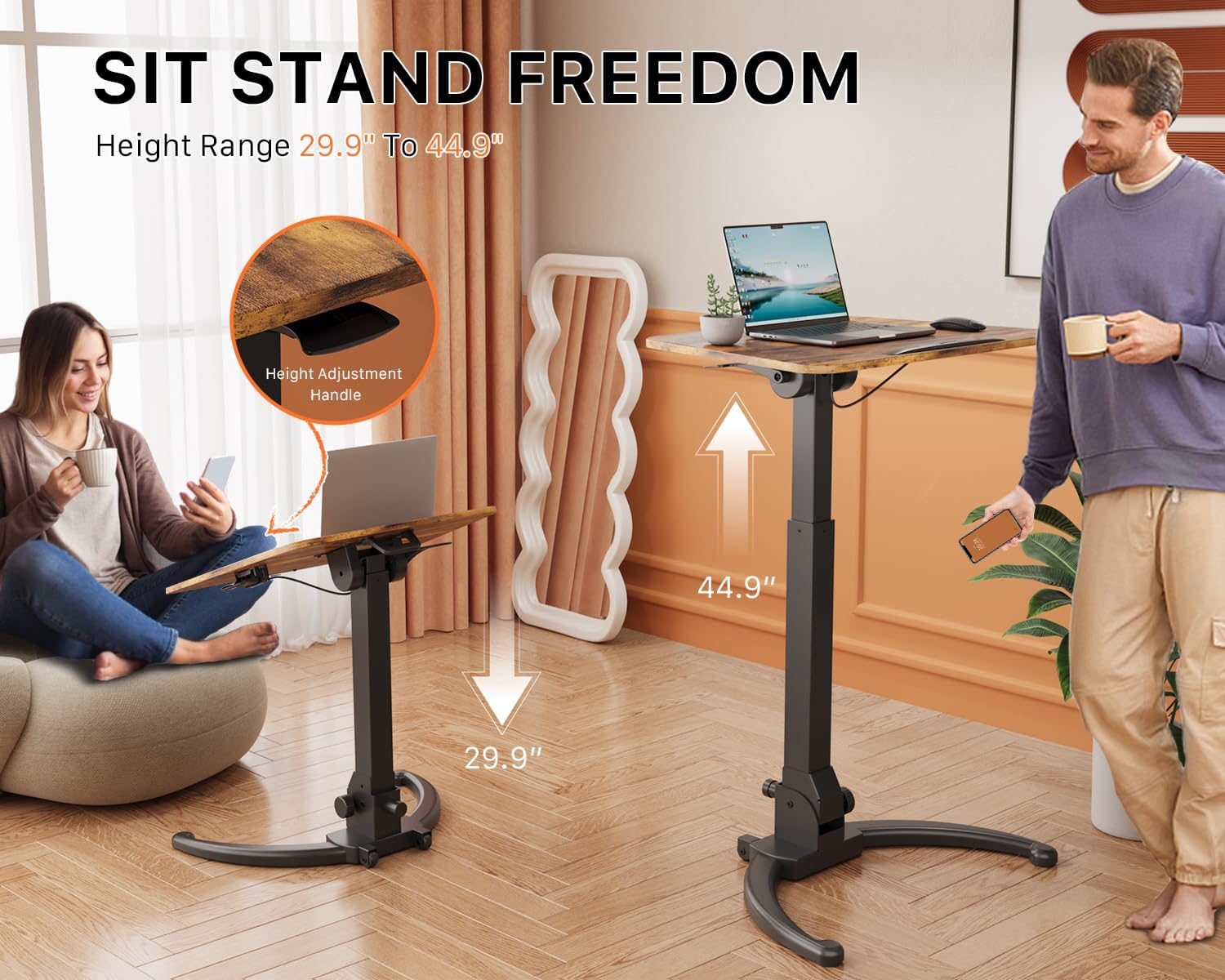 JOY worker Foldable Mobile Standing Desk, Pneumatic Height Adjustable Sit Stand Desk, 90° Tiltable Rolling Laptop Table, Portable Workstation with Non-Slip Mat for Home Office, Holds Up to 22lbs