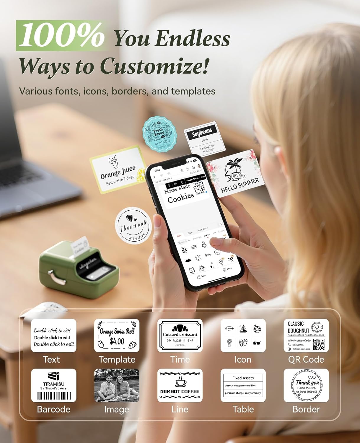 - 【Thermal Label Maker】In addition to providing features like automatically recognize sticker size, batch printing, image recognition,the NIIMBOT APP also has 30+ fonts, 100+ borders, 1500+ symbols