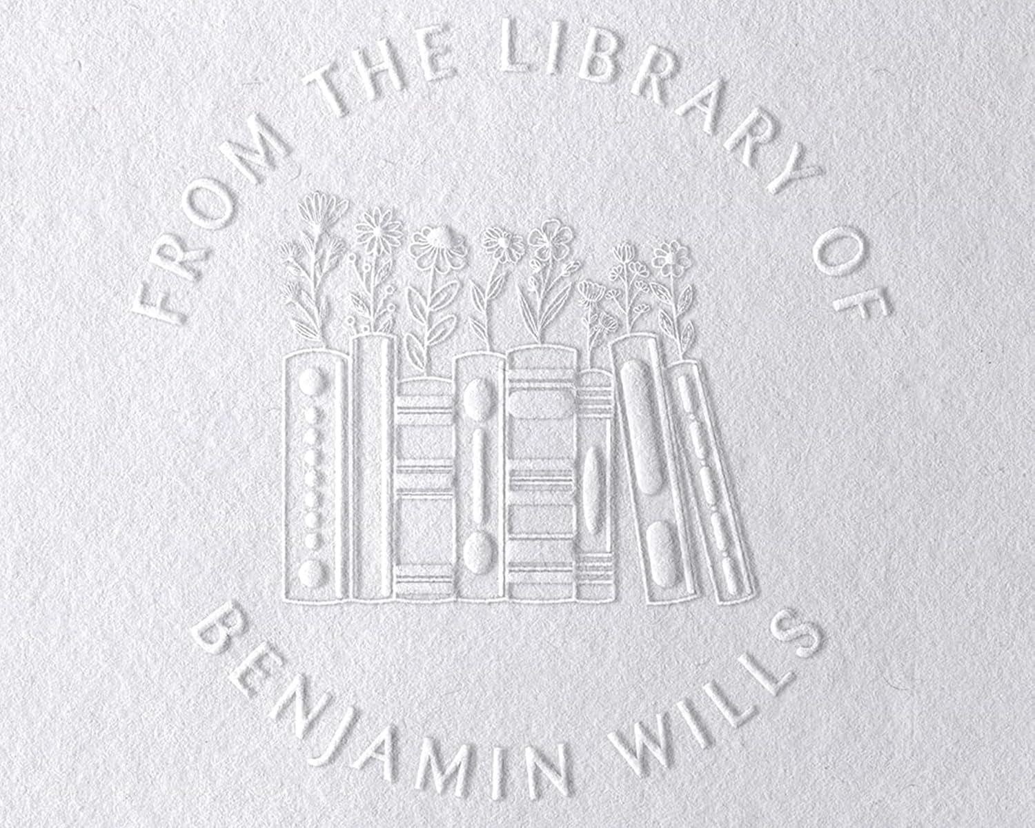 Book Embosser Personalized from The Library of | Ex Libris | Floral Stamper | Custom Library Stamps | Monogram Self-Inking Wood Handle (Floral 3)