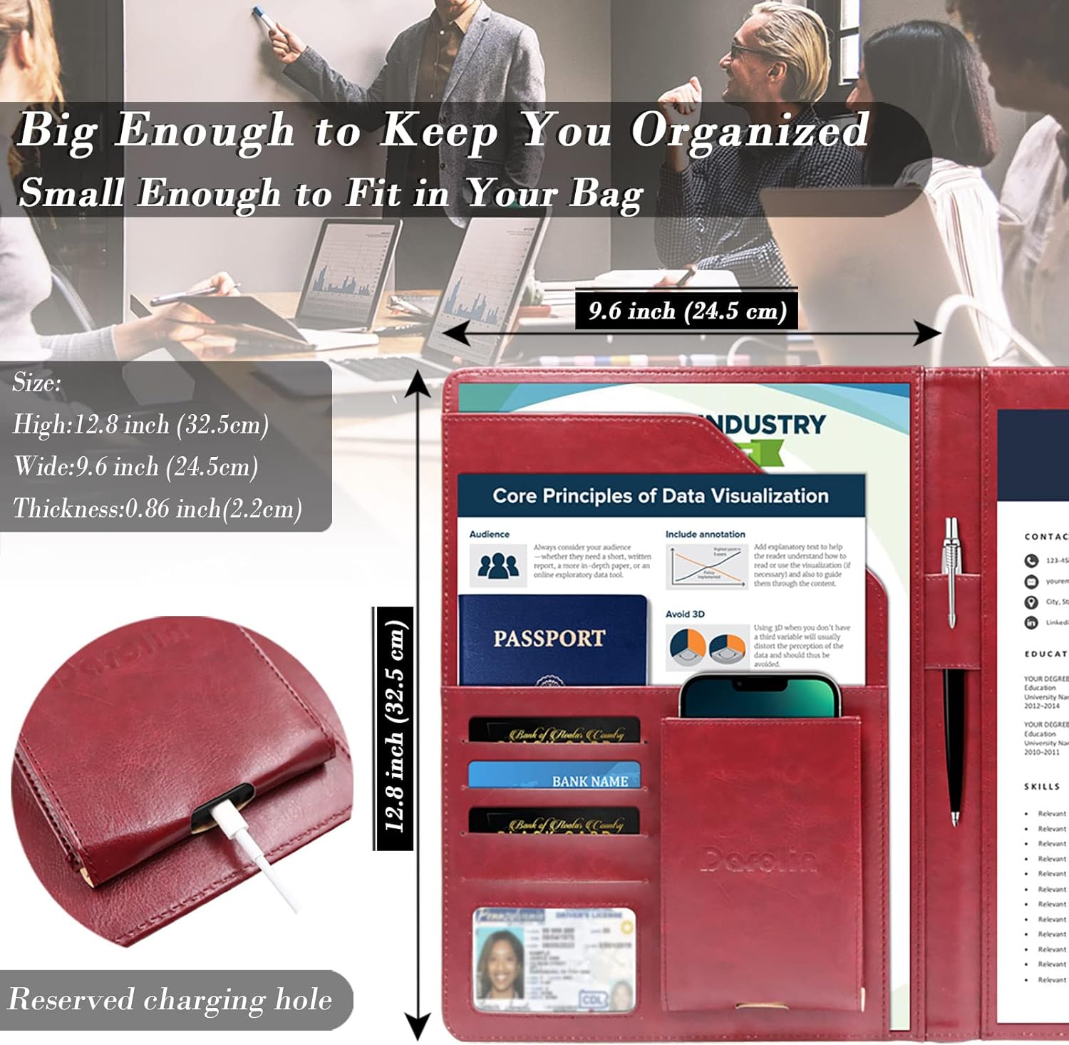 Darolin Business/Resume Padfolio Portfolio Folder with Letter/A4 Size Clipboard, Interview/Conference/Legal Document Organizer, Premium Portfolio Professional Case, Padfolio for Women/Men-Redwine