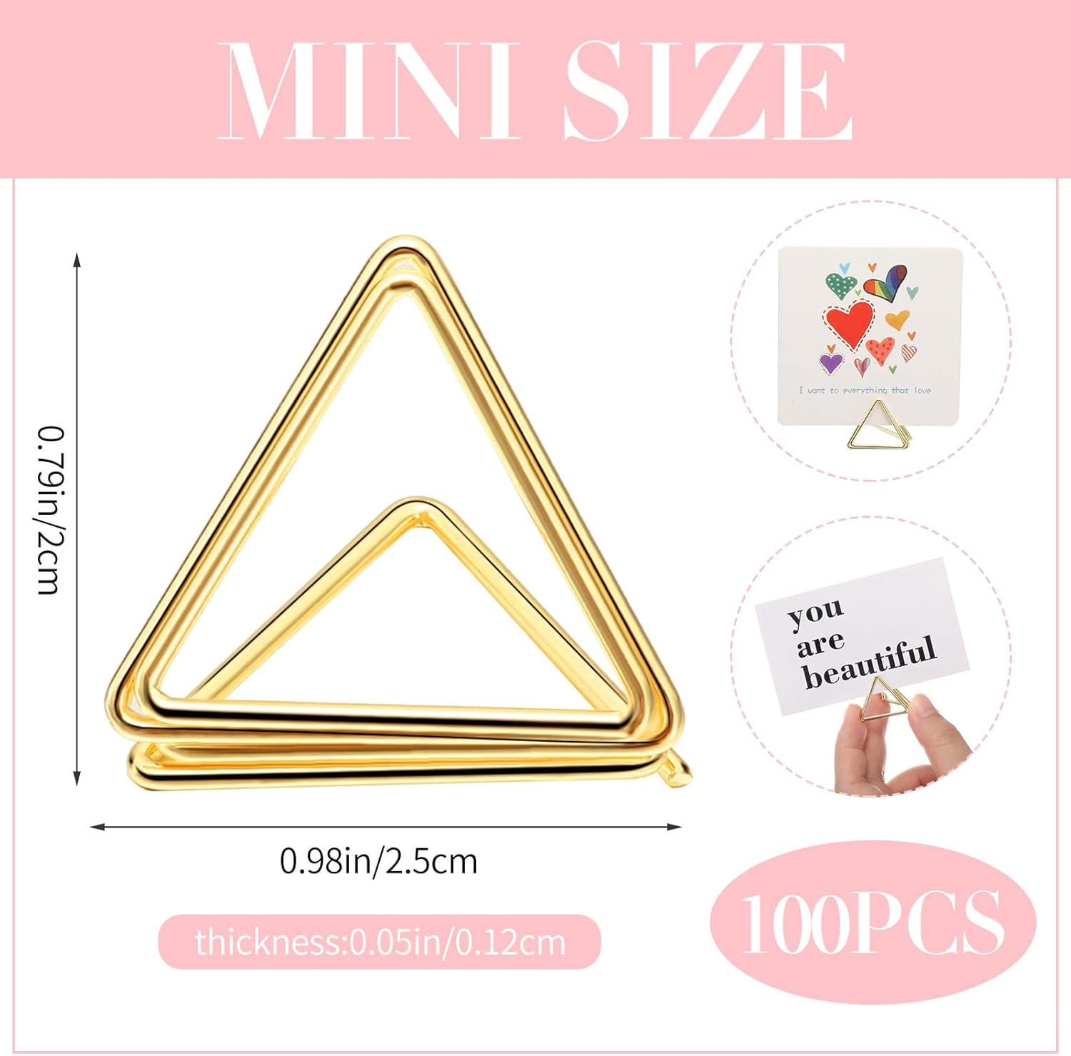 100 Pcs Place Card Holder Triangle Shape Table Number Holder Wedding Table Card Holders Mini Name Card Holder Place Setting Holder Picture Clips Stand for Centerpiece Anniversary Party(Gold)