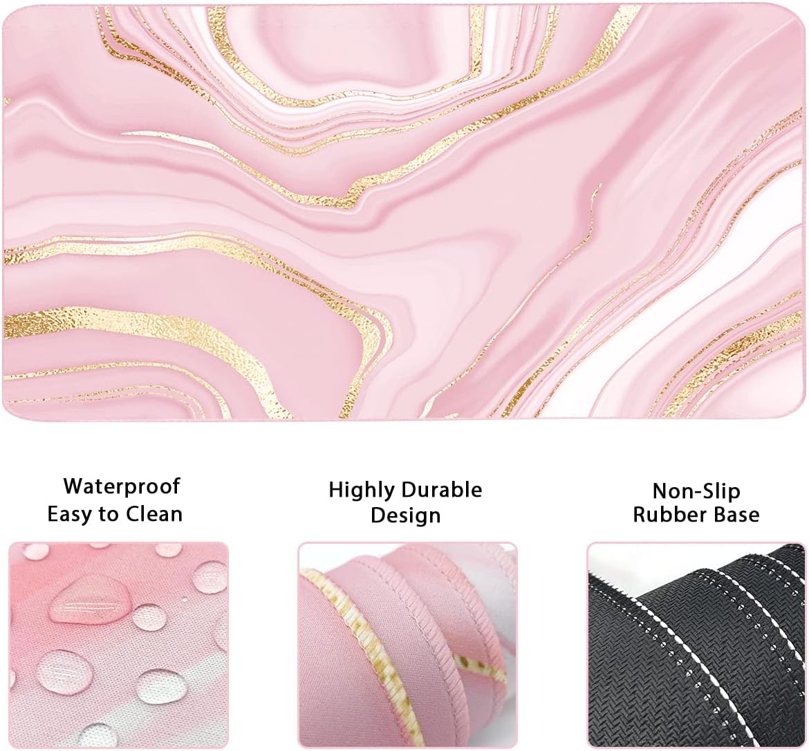 - 【Slip-Resistant Backing】: The soft and dense slip resistant rubber base keeps the pad firmly in place, it can effectively prevent the mouse and keyboard from sliding and moving for stable operation. Works well on all types of desks including wood, glass, leather, metal, marble desk and more. While sturdy, the entended desk pad is flexible enough to be rolled up for easy transport, to move around so you can work or game wherever you want.