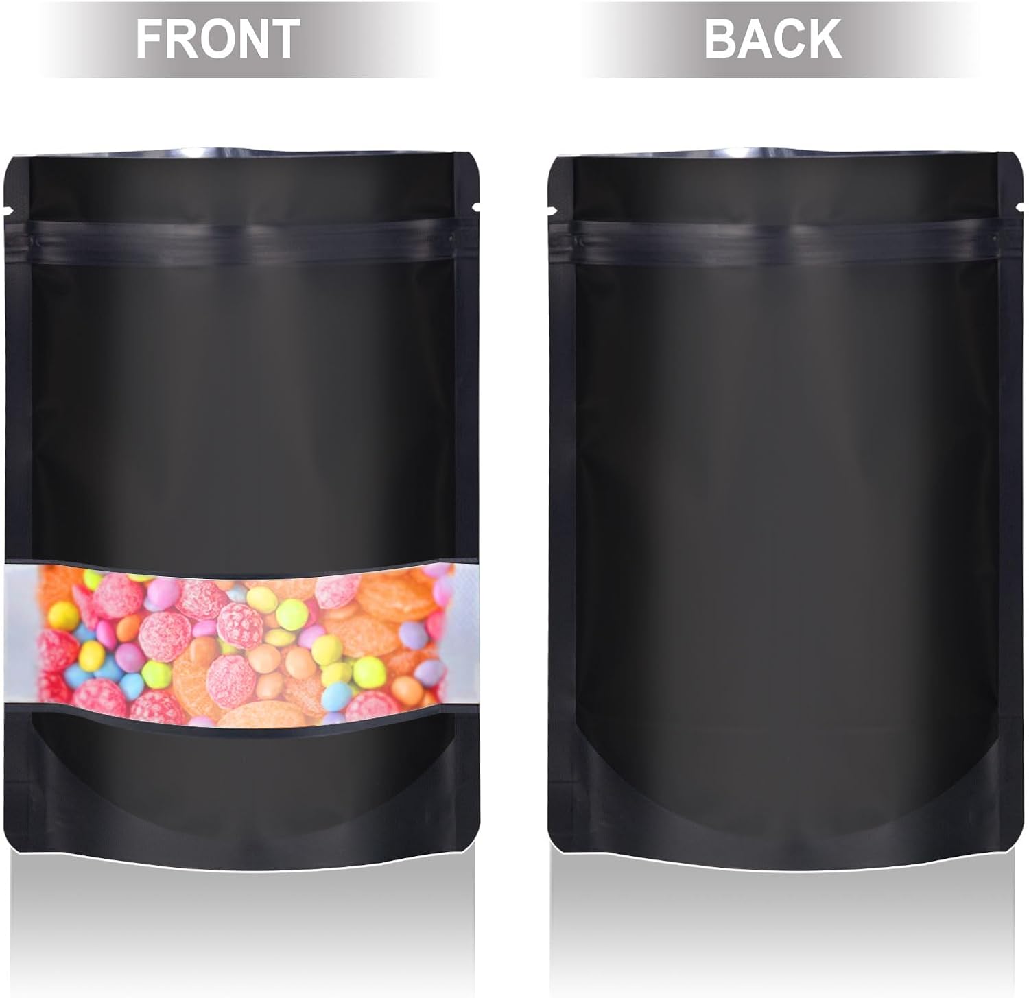 4"x6" 120pcs Mylar Bags for Food Storage,Smell Proof Bag with Matte Window Resealable Food Storage Bags for Small Business, Stand-up Foil Pouch Packaging Freeze Dried Candy Bag(Black)