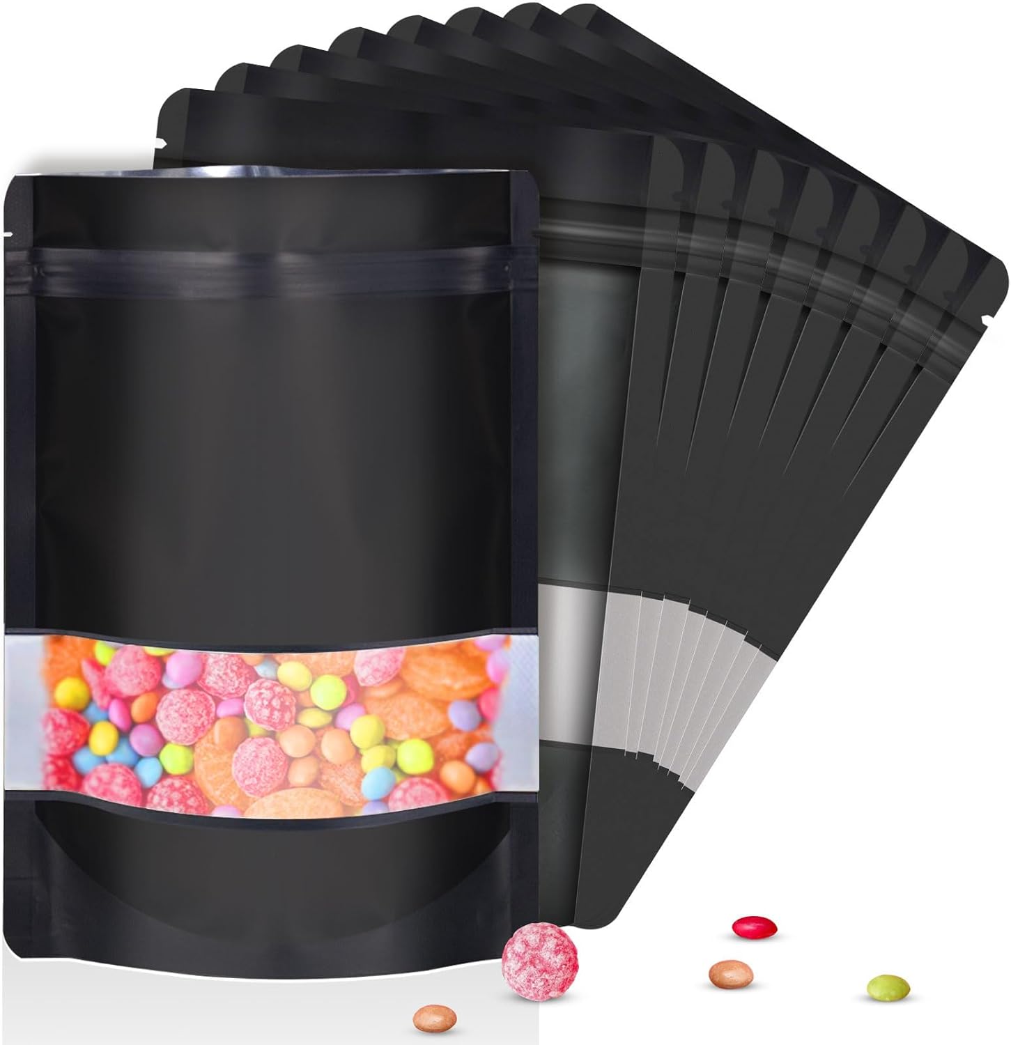 5.5"x7.8" 120pcs Mylar Bags for Food Storage,Smell Proof Bag with Matte Window Resealable Food Storage Bags for Small Business, Stand-up Foil Pouch Packaging Freeze Dried Candy Bag(Black)