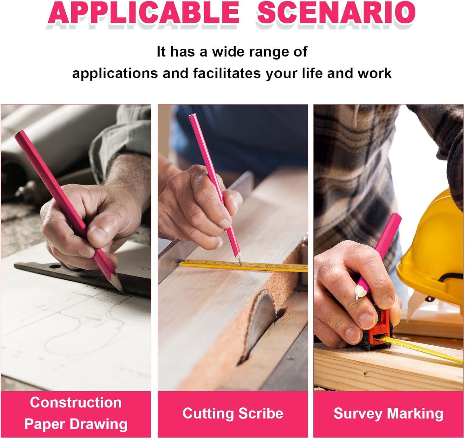 - Multipurpose: wood carpenters pencil can withstand the pressure of marking on hard, rough, and uneven surface materials, such as wood, plywood, cardboard, unprocessed wood, wood, paper, concrete, bricks, and so on