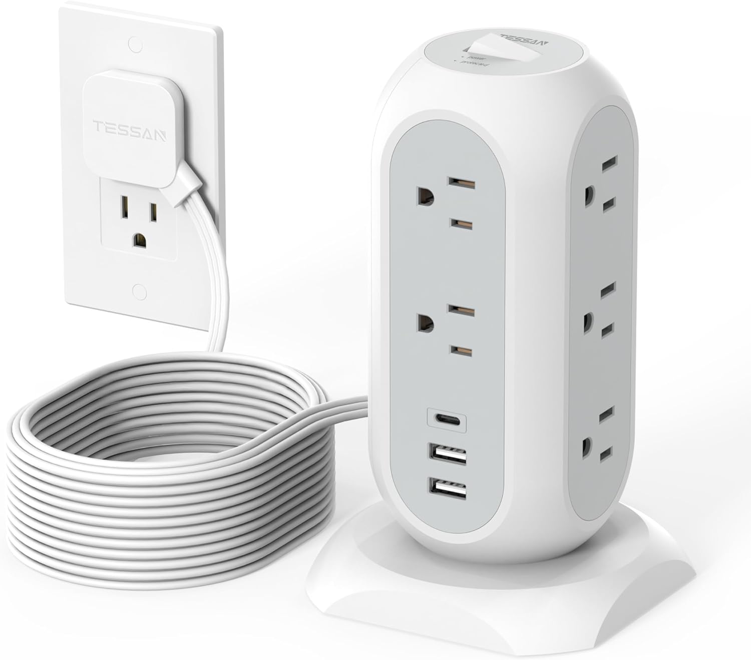 15 ft Extension Cord Tower Power Strip, 11 Outlets 3 USB(1 USB-C) Chargers, TESSAN Surge Protector with Multi Plug Outlet, 1050J Protection, Office Supplies, Desk Accessories, School Dorm Essential