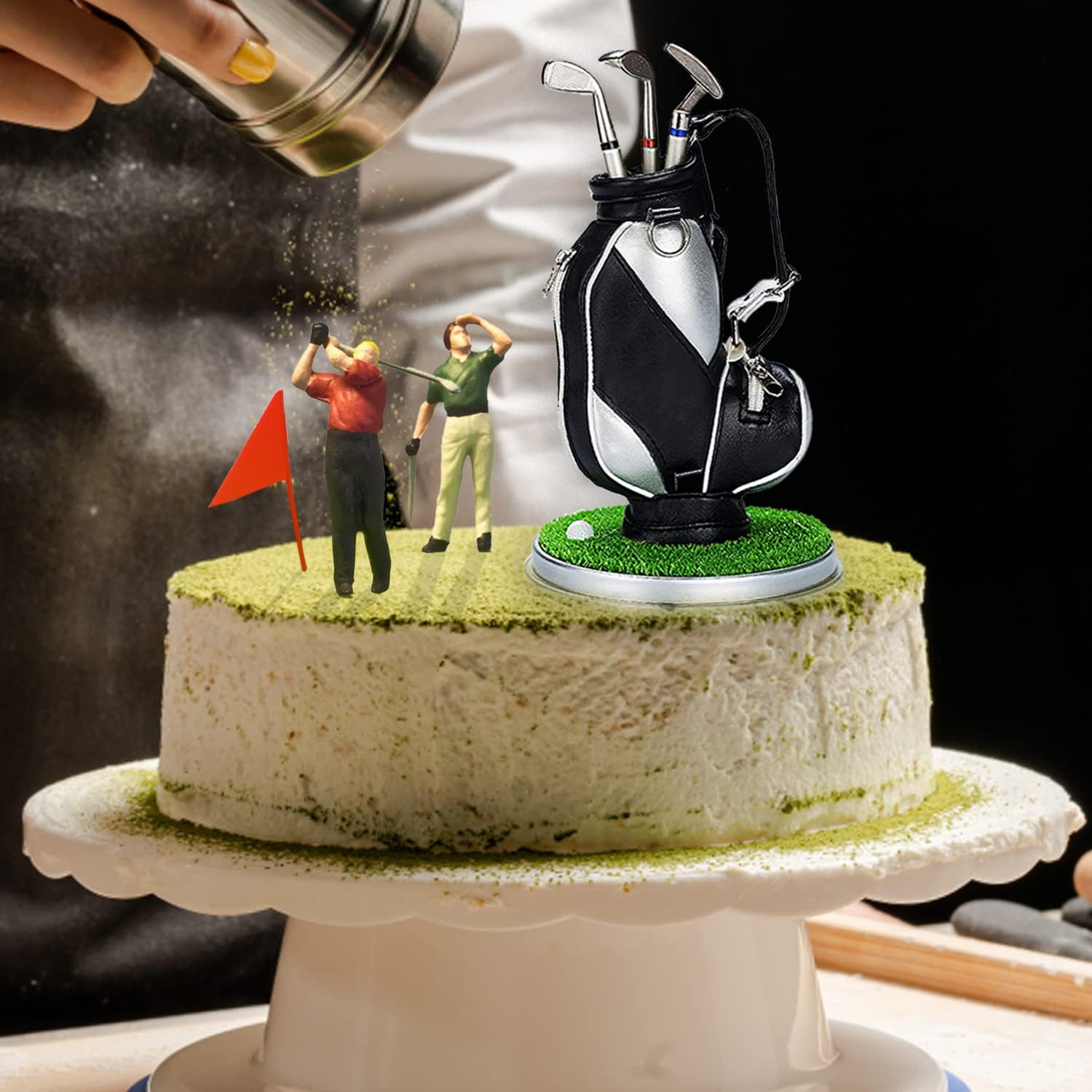 - GOLF GIFTS FOR MEN, GOLF PEN HOLDER FOR DESK, UNIQUE & NOVELTY SET: The mini golf bag pen holder placed on the base of the miniature golf putting green, with 3 mini golf club pens and 1 miniature golf ball.