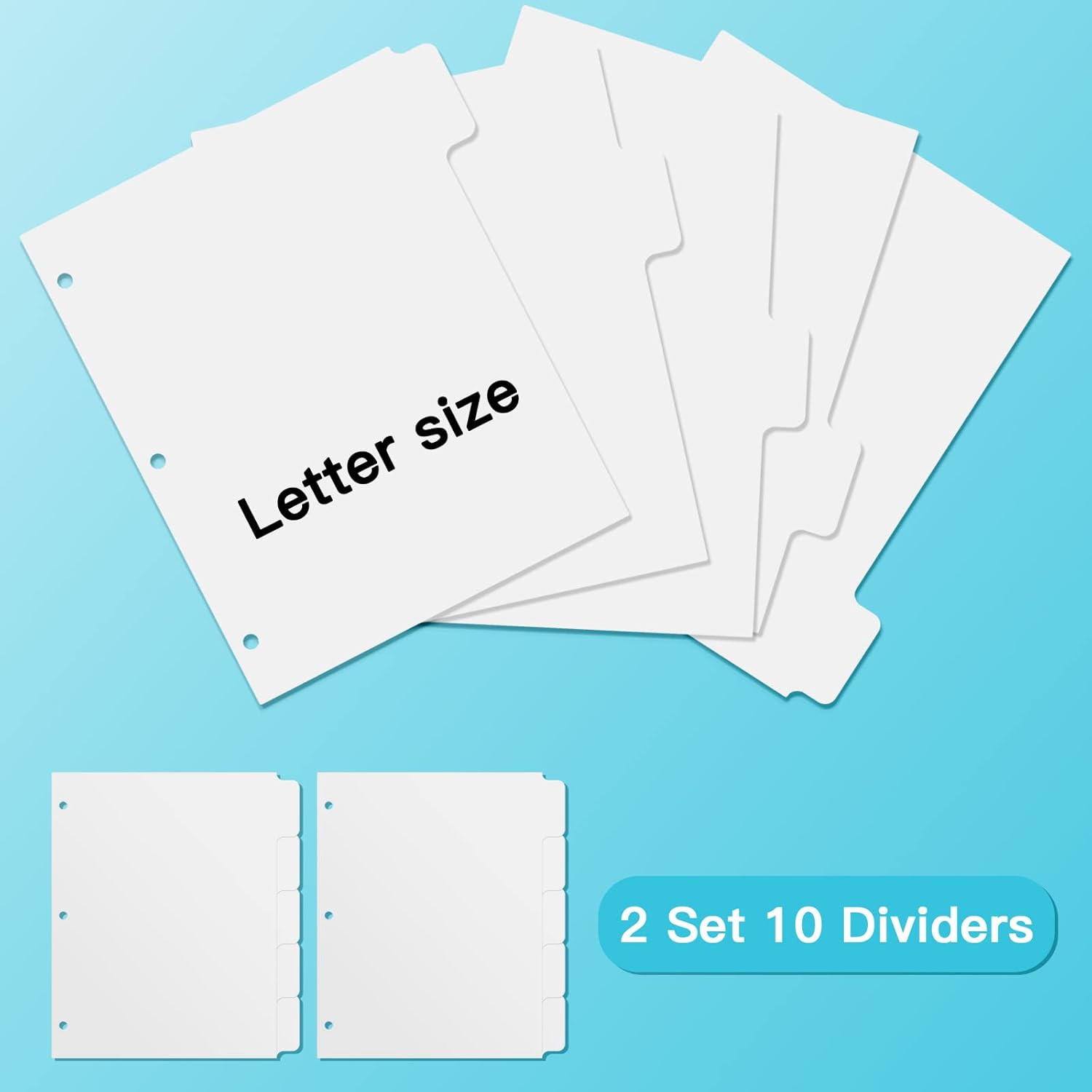 3 Ring Binder Dividers with 5 Tabs, Write & Erase Plastic Binder Dividers Durable 3 Hole Punch Dividers Letter-Size 1/5 Cut Big Tabs Dividers, 2 Set, 10 Dividers Total