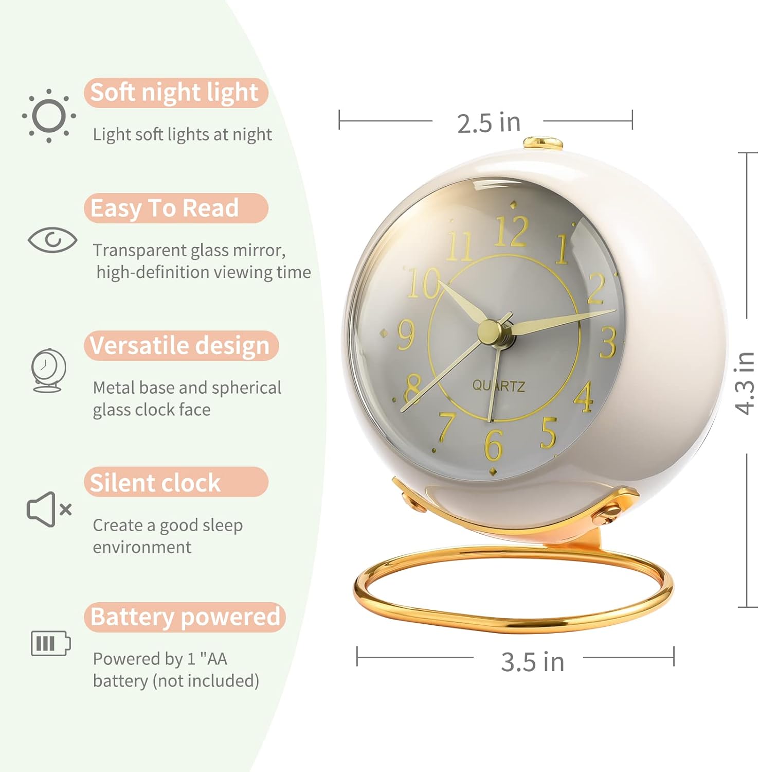 - HD glass, digital clarity:High quality metal material.Small alarm clock’s glass HD transparent , Size: 3.5 inch*4.3 inch*2.5 inch