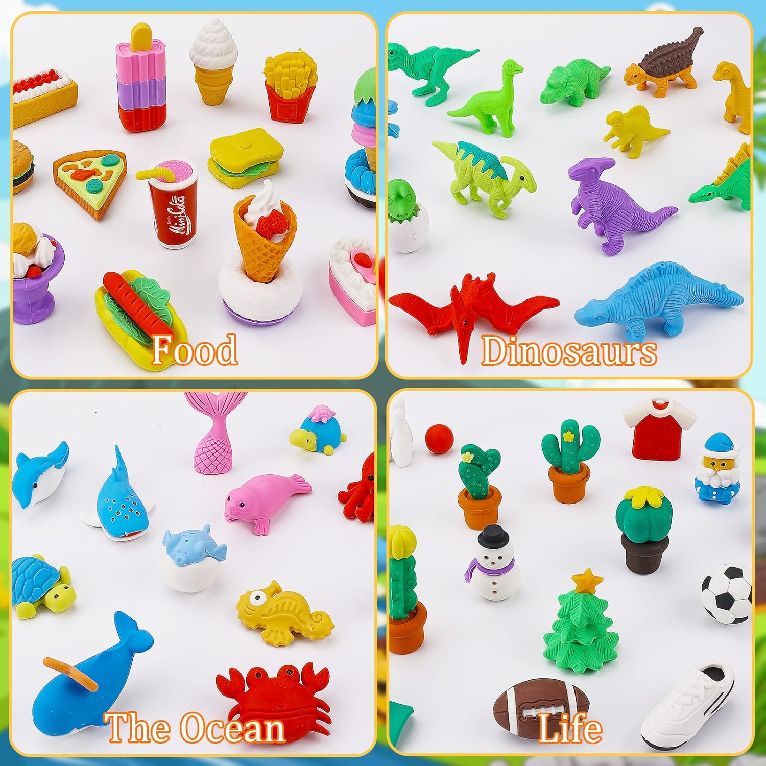 - PARTY PERFECT:From Easter basket stuffers to Christmas stocking stuffers, these food erasers for kids (check out our snack-shaped sets!) and animal designs work for any theme. Hosting a woodland party? Mix the cute party favors with glittery decoration! Their collectible size makes them ideal for goody bags, treasure boxes, or carnival prize packs. Parents rave about their durability – no more broken small erasers for kids after one use