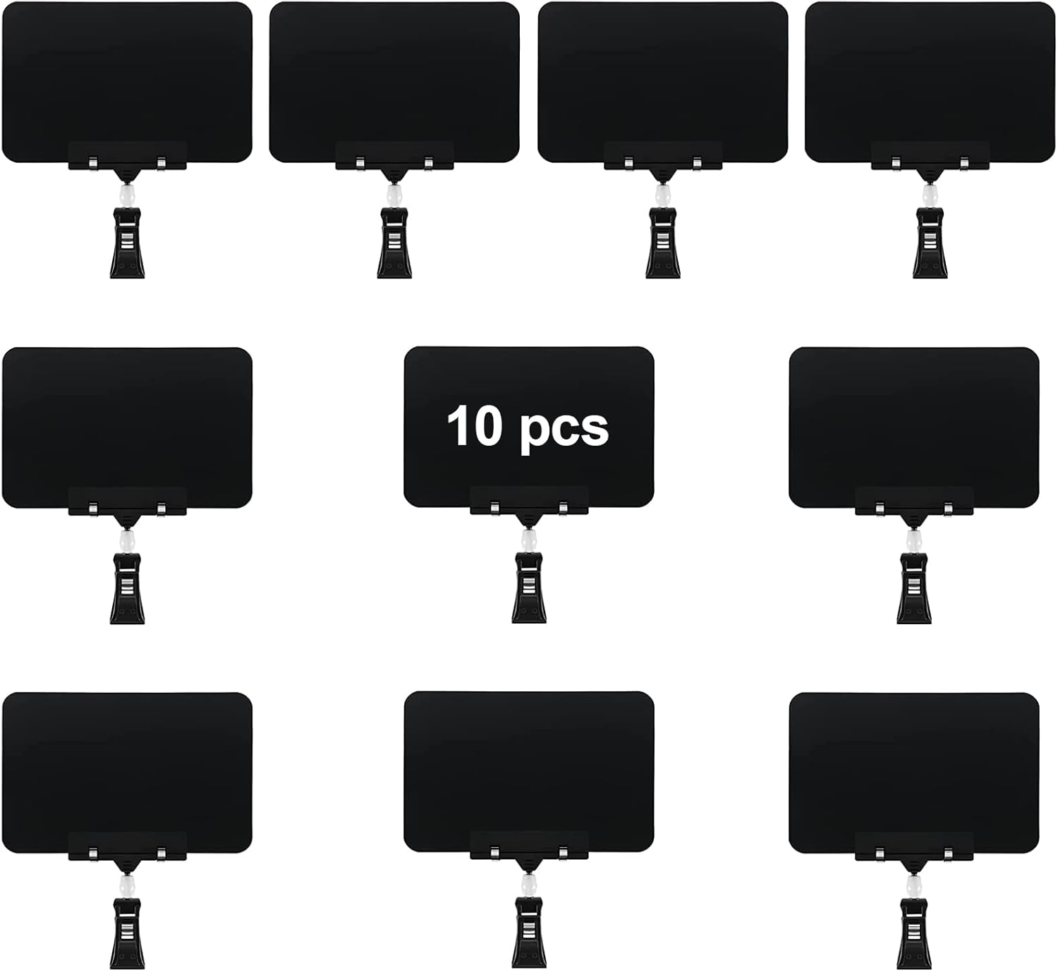 10 Pack Double Head Display Clips Rotating Reuse Sign Price Tag Merchandise Sign Display Clip Holder, Mini Plastic Chalkboard Sign with Clip for Business, Party, Office, Exhibition (Black)