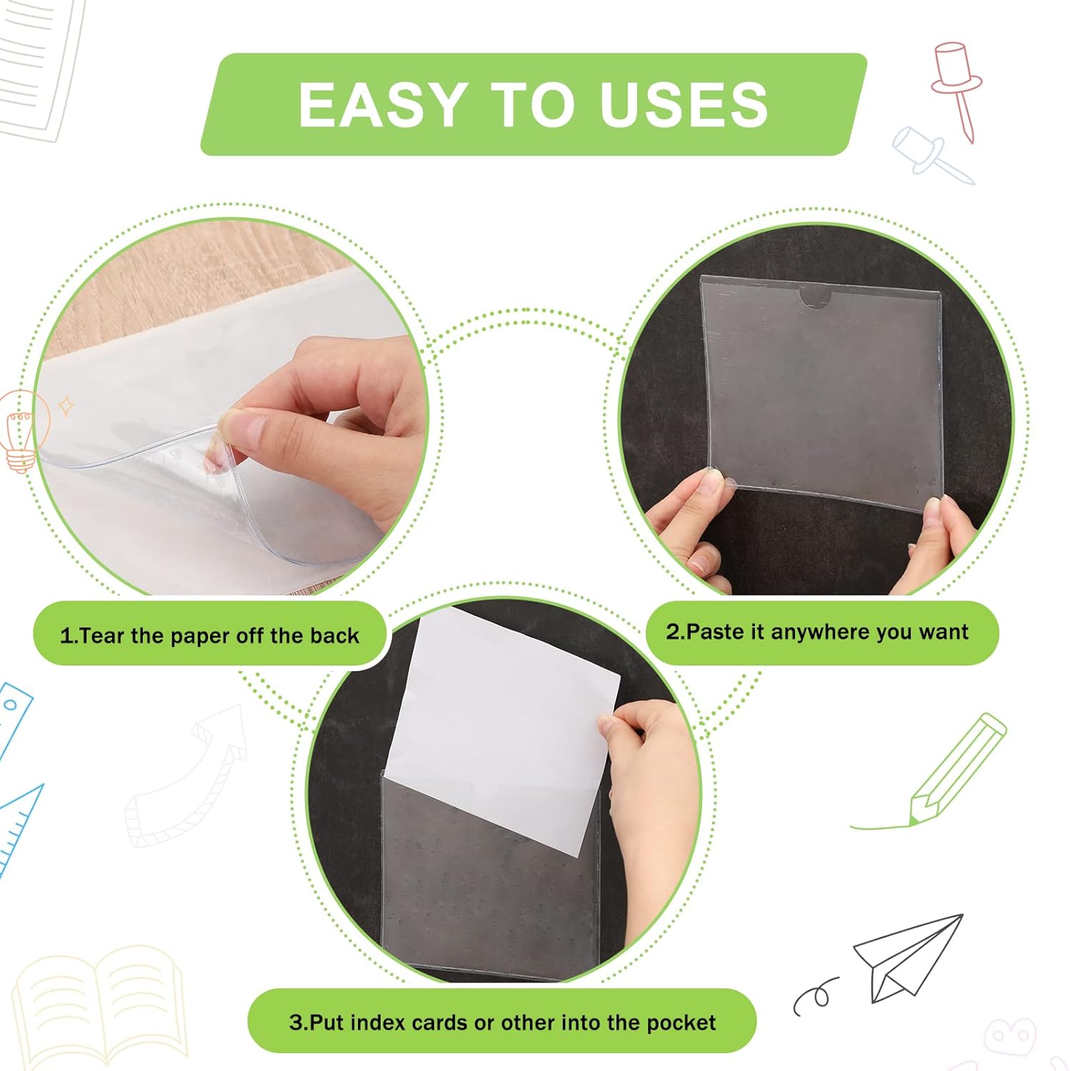- Stay Organized: the self adhesive index card pocket can keep order by inserting your cards into plastic sleeves and attaching them wherever you need them; Our self-adhesive cards are suitable for making library labels, self adhesive name tags for classroom, toy labels for bins with pictures, labels for plastic storage bins and other