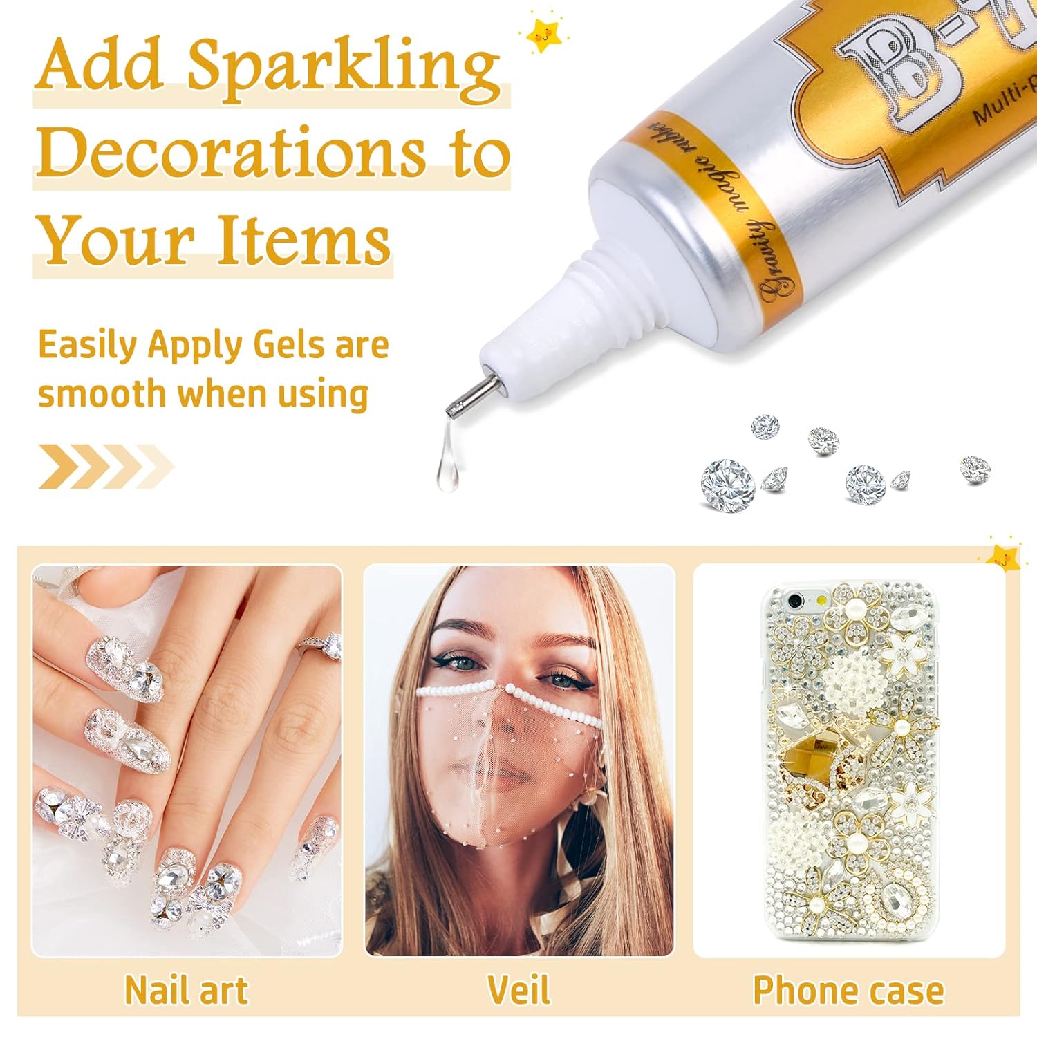 - ๐๐๐๐๐ฅ๐ ๐๐ฉ๐ฉ๐ฅ๐ข๐๐๐ญ๐จ๐ซ ๐ฐ๐ข๐ญ๐ก ๐๐จ๐ง-๐๐ฅ๐จ๐ ๐๐๐ฉ B7000 jewelry glue design with slim metal precision tips in case gets clogged after use. The adhesive glue flows smoothly and allows you to have good control over where it's going, makes for applying the glue pin point accuracy. Moreover that, the cap that has a needle-like plug to prevent fabri-fuse glue from sticking shut.
