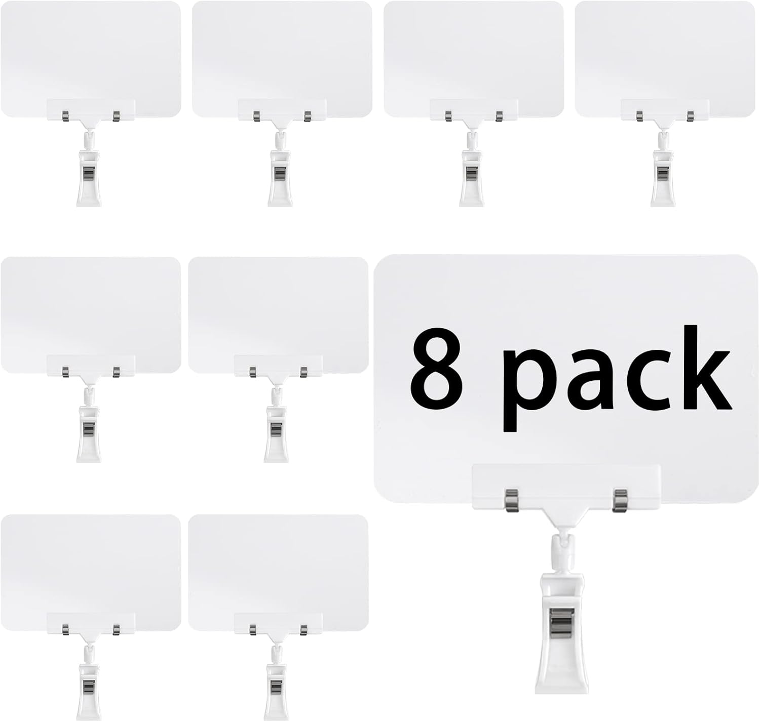 - Adjustable Clip Sign: Plastic adjustable pop clip sign holder can be used as merchandise price sign in supermarkets, stores and other large shopping malls to attract customers, also suitable for displaying notes, reminders and photos, even food display sign holder, party table numbers. With the erasable liquid chalk, you can write anything you want.