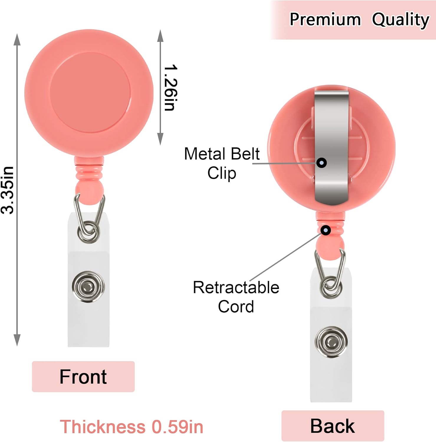 - Assorted Color: These ID retractable badge holder reels come in 14 solid colors, including purple, black, pink, flesh, dirty pink, peacock blue, light blue, sky blue, white, rose , red, yellow, cyan, gray. it is convenient for you to classify different uses.Our badge reel back and front are the same color, more beautiful. Exquisite appearance design, make you more dazzling
