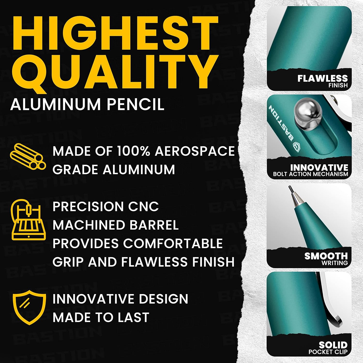 Bastion Mechanical Pencil with Medium Point Refillable Leads - Premium Aluminum Bolt Action Gift Case Metal For Architecture, Drawing, Sketching 20 x 0.7mm Lead Refills, (PENCL-BLTACN-ALTFB)