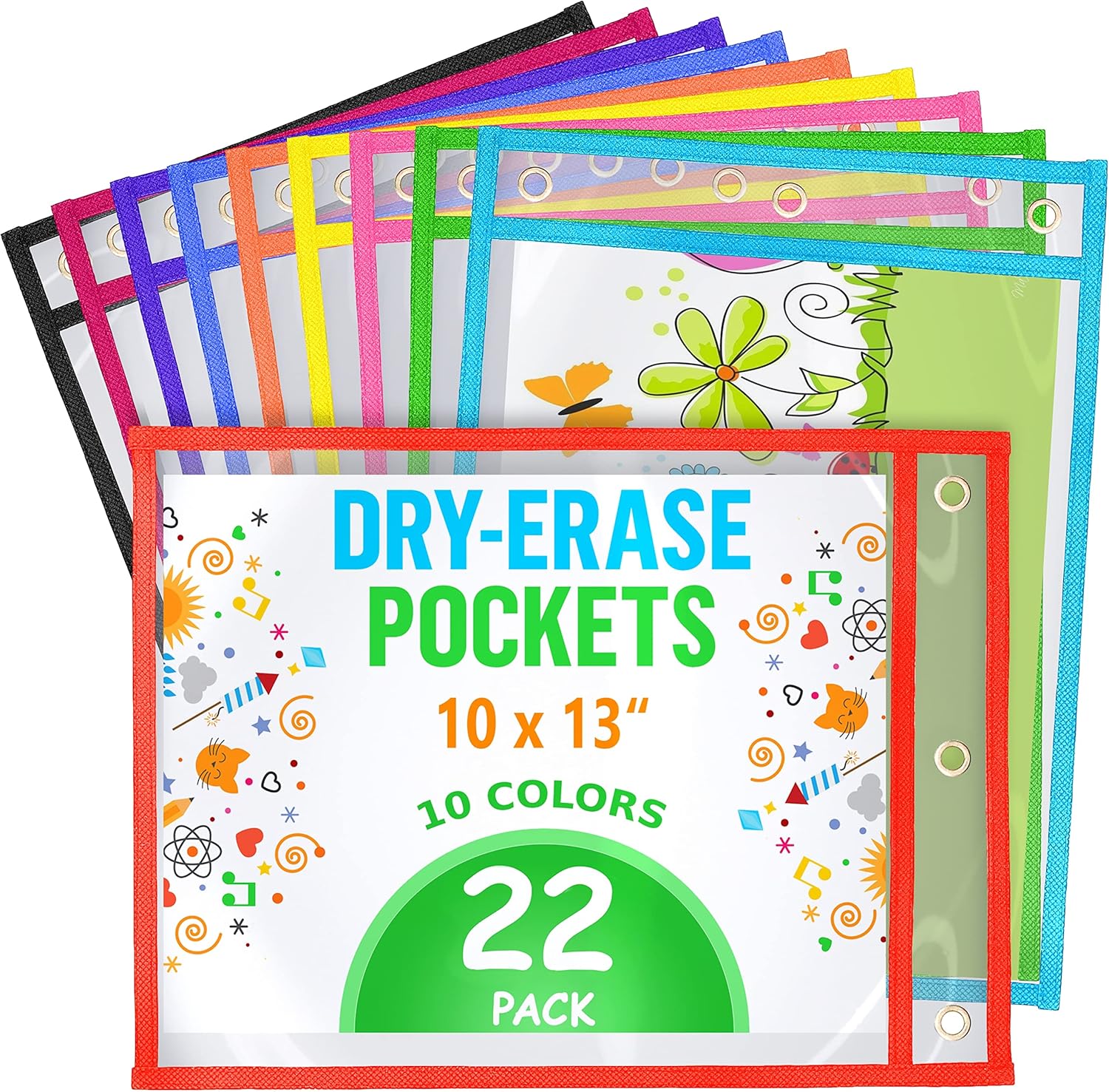 22 Dry Erase Pockets Reusable Sleeves 10x13 - Dry Erase Pocket Sleeves Dry-Erase Sleeve Classroom Pack Dry-Erase Sheet Protectors Pouches Write and Wipe Pockets Erasable Pocket Sleeves for Classroom