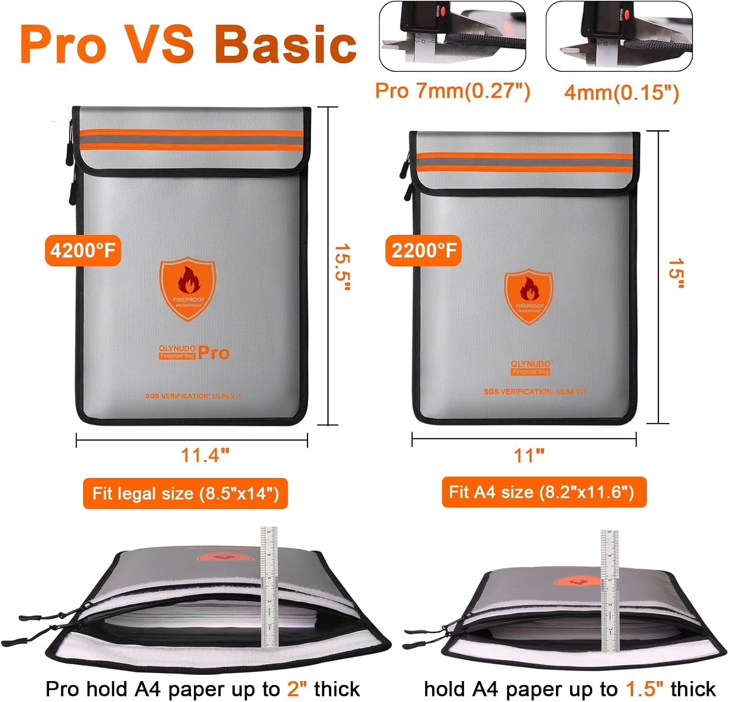 - LEGAL SIZE - The size of the enhanced fire proof bag is larger than the normal A4 size (15*11 inches), fully accommodates legal size (15.5*11.4 inches), which is 20-30% more than the capacity of the basic model