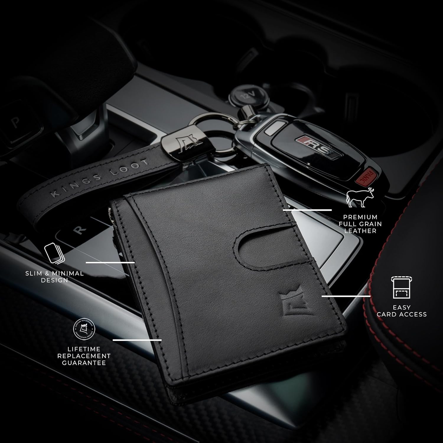 Kings Loot Money Clip Slim Minimalist Wallet for Men – RFID Blocking Leather Design with Money Clip – Front Pocket Bifold Holds 12 Cards – Stylish & Compact Wallets (Black)