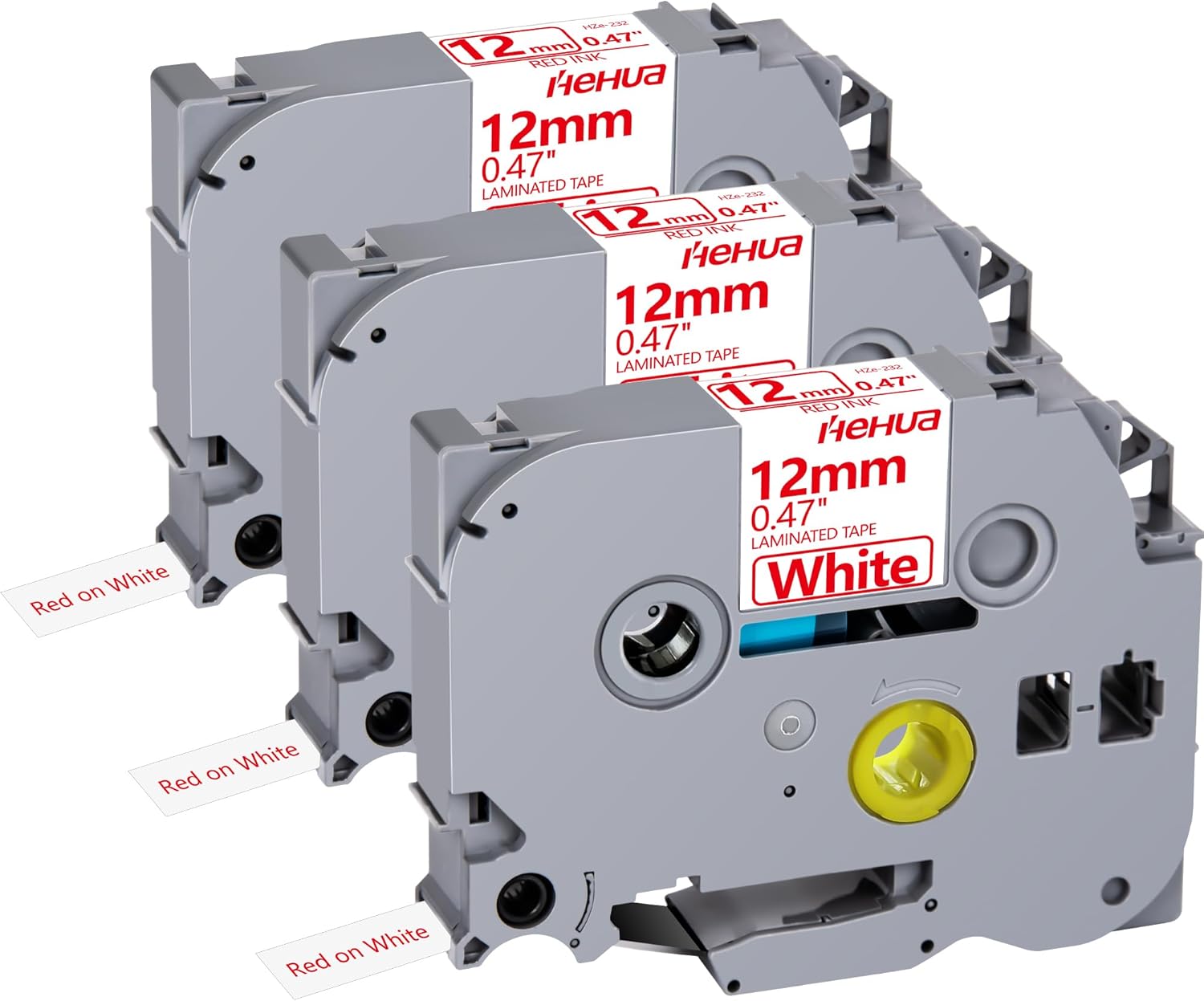 Hehua Tze Tz Tape 12mm 0.47 Laminated White Compatible for Brother P-Touch TZe-232 TZe232 TZ-232 TZ232 Tape for Ptouch PT D210 D200 D220 D610 H110, 1/2'' x 26.2ft Red on White, 3 Pack