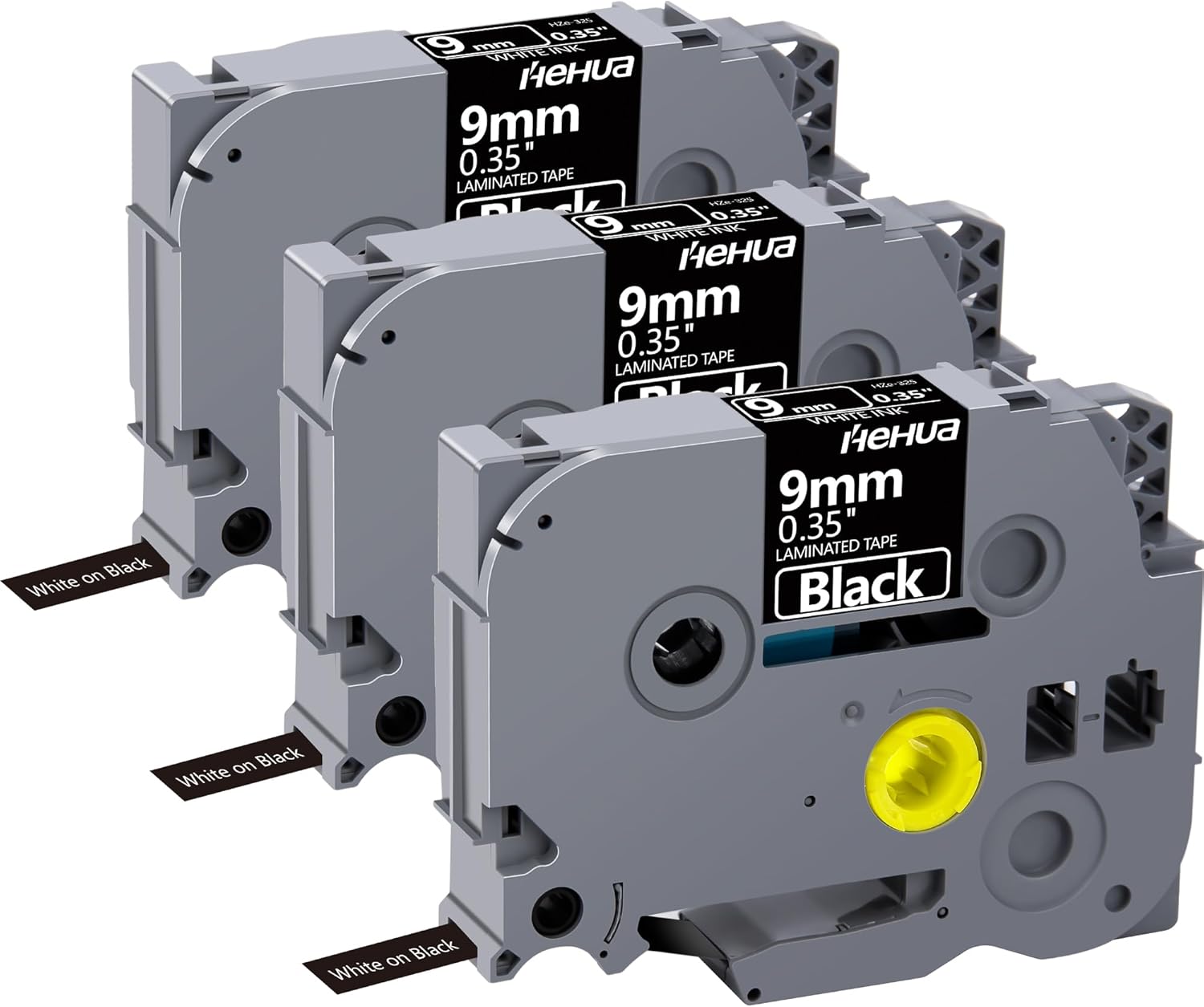 Hehua Tze Tz Tape 9mm 0.35 Laminated Black Tape Compatible for Brother P-Touch TZe-325 TZe325 TZ-325 TZ325 Label Tape for Ptouch PT D210 D200 D220 H110, 3/8'' x 26.2ft White on Black, 3 Pack