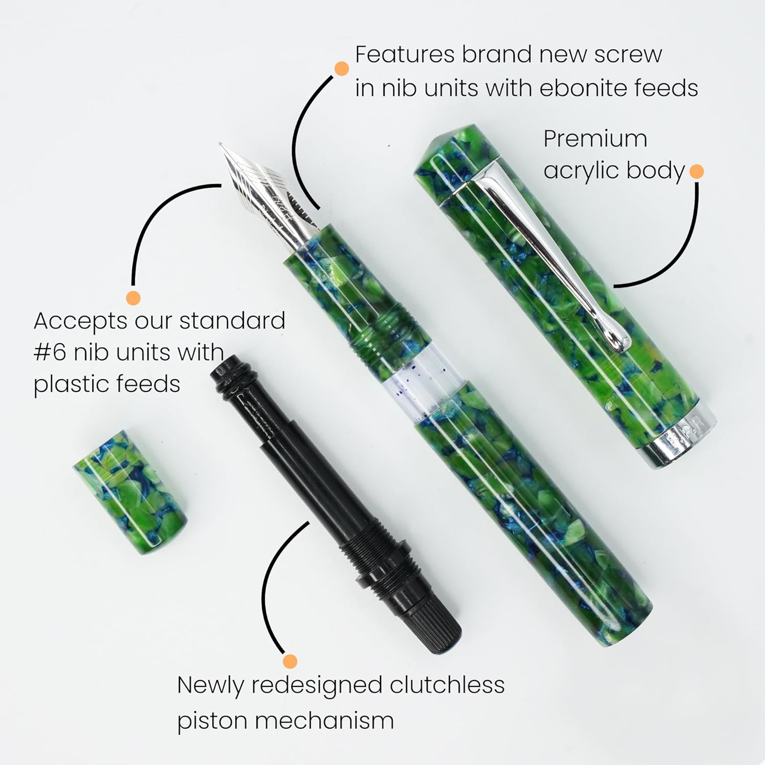 Jaipur V2 Piston Filled Refillable Fountain Pen - Jade Ultra Flex Cursive Pen w/Stainless Steel Nib - Luxury Pens w/Acrylic Body & Ebonite Feed - Fountain Pens for Journaling & Calligraphy