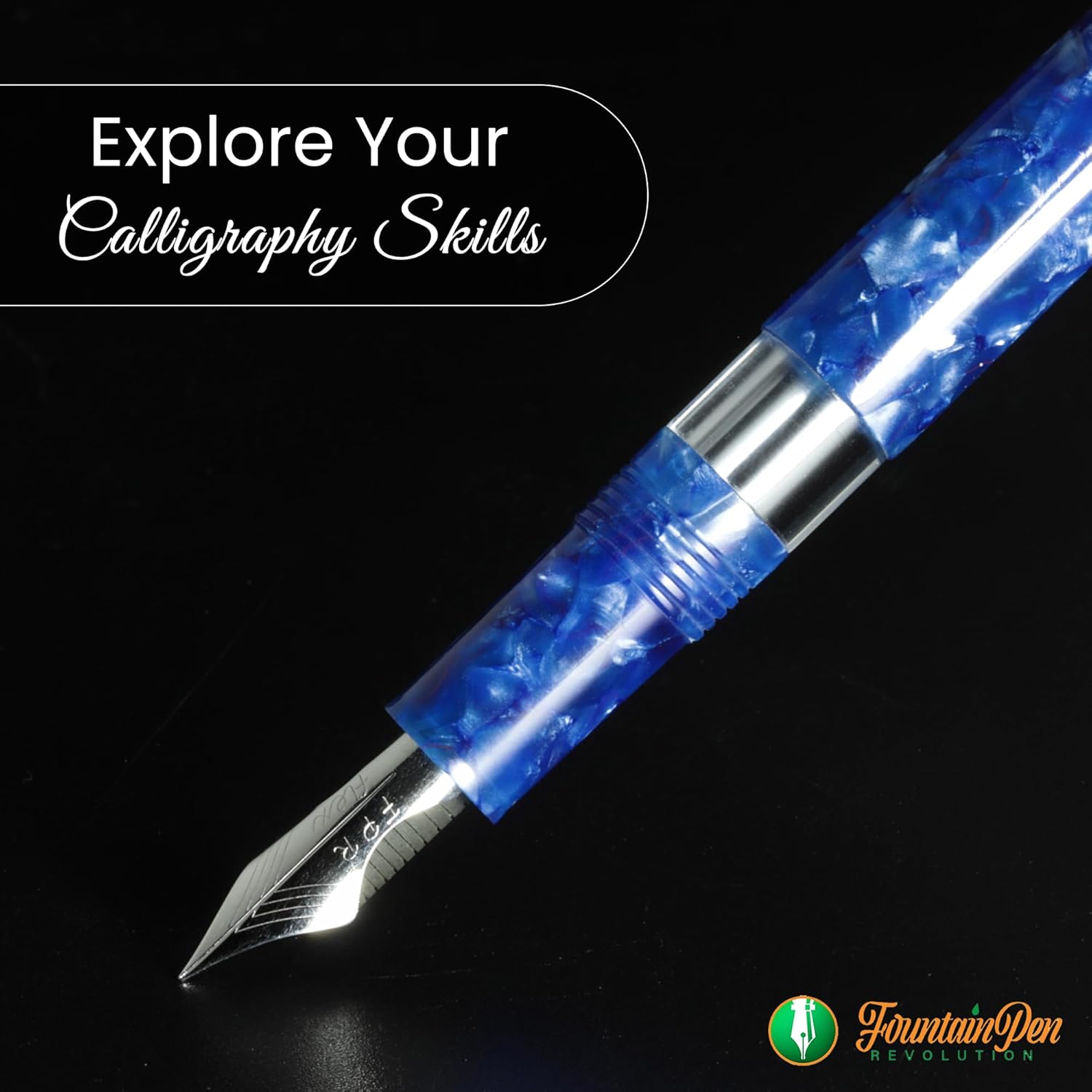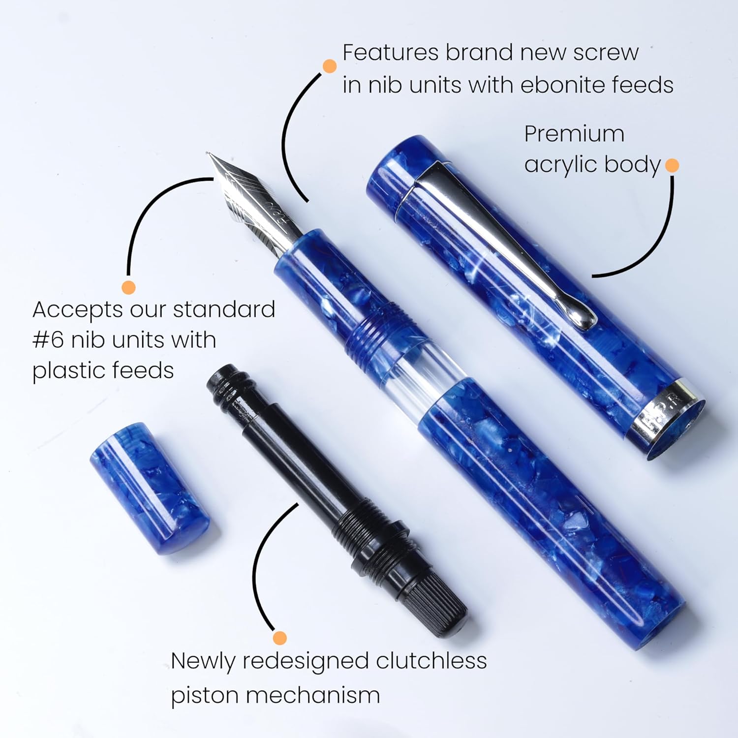Jaipur V2 Piston Filled Refillable Fountain Pen - Blue Ultra Flex Cursive Pen w/Stainless Steel Nib - Luxury Pens w/Acrylic Body & Ebonite Feed - Fountain Pens for Journaling & Calligraphy