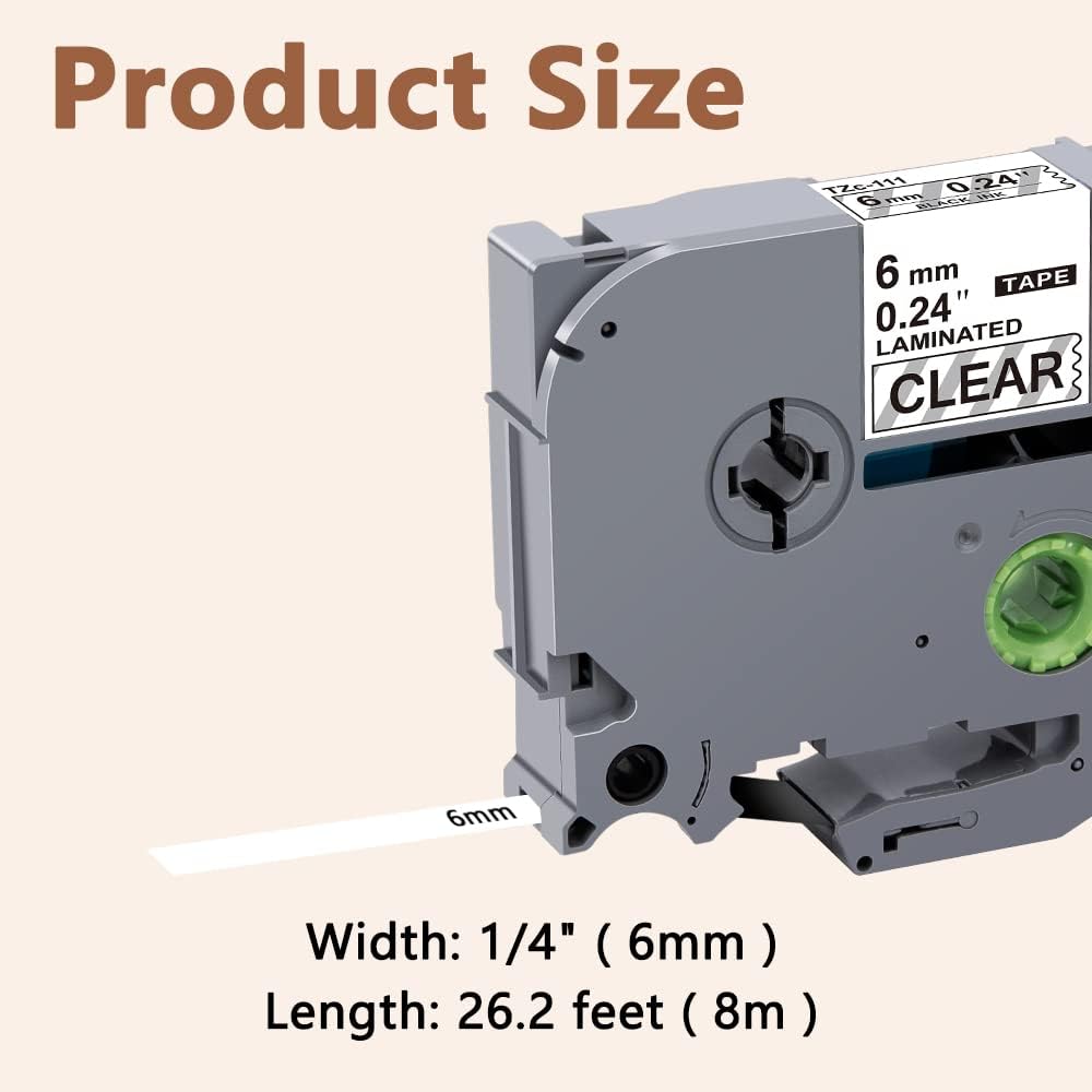 - 6mm tze clear label tape tze-111 compatible for Brother label maker PT-D200 PT-D210 PT-D220 PT-D400 PT-D600 PT-D610 PT-E110 PT-H100 PT-H110 PT-P700 PT-1180 PT-1280 PT-1830 PT-1880 PT-2430PC and so on