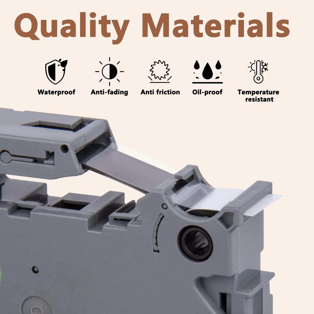 - Wide application: Compatible for Brother P-touch TZe 111 label tape is ideal to print clear, good-looking and durable labels. These labels are great for shelving, kitchen use, cabinets, file folders, USB sticks, food containers, storage boxes, personal possessions, children's school equipment with it's superior adhesive