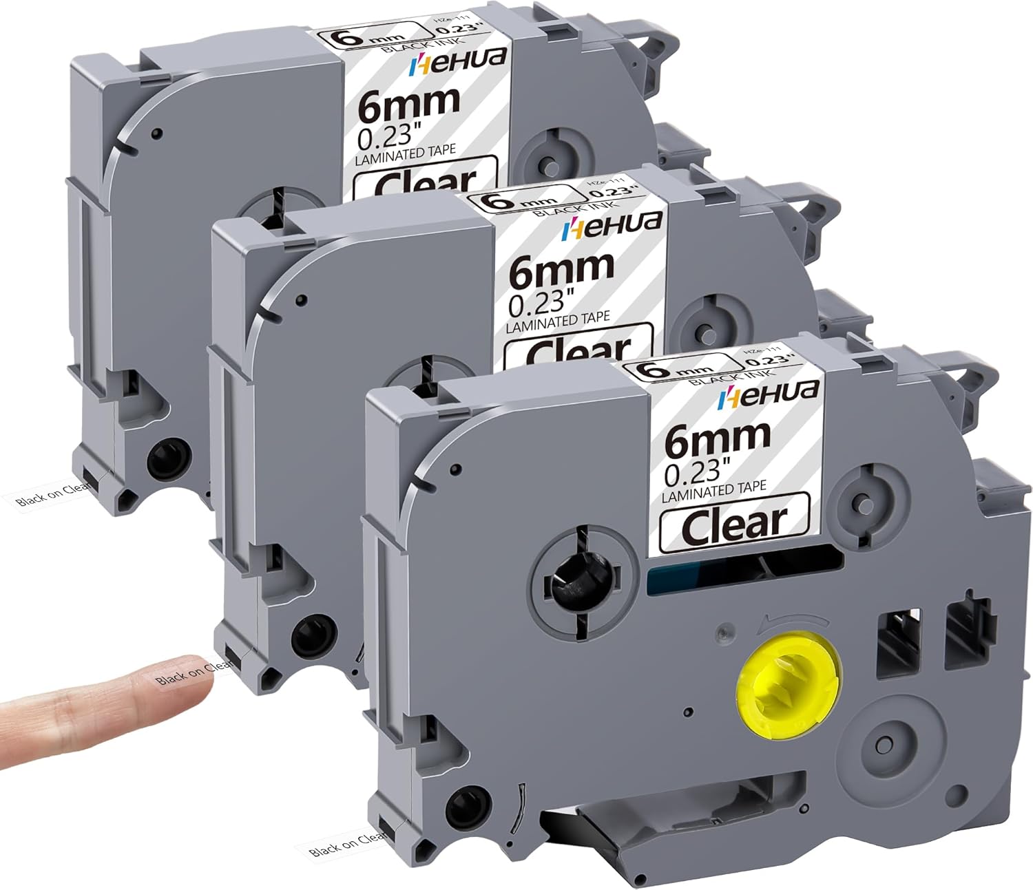 Hehua Tze Tz 6mm 0.23 Laminated Clear Tape Compatible for Brother Label Maker Tape TZe-111 TZe111 TZ-111 TZ111 for Ptouch PT D200 D210 H110 1880, 1/4'' x 26.2ft Black on Clear, 3 Pack