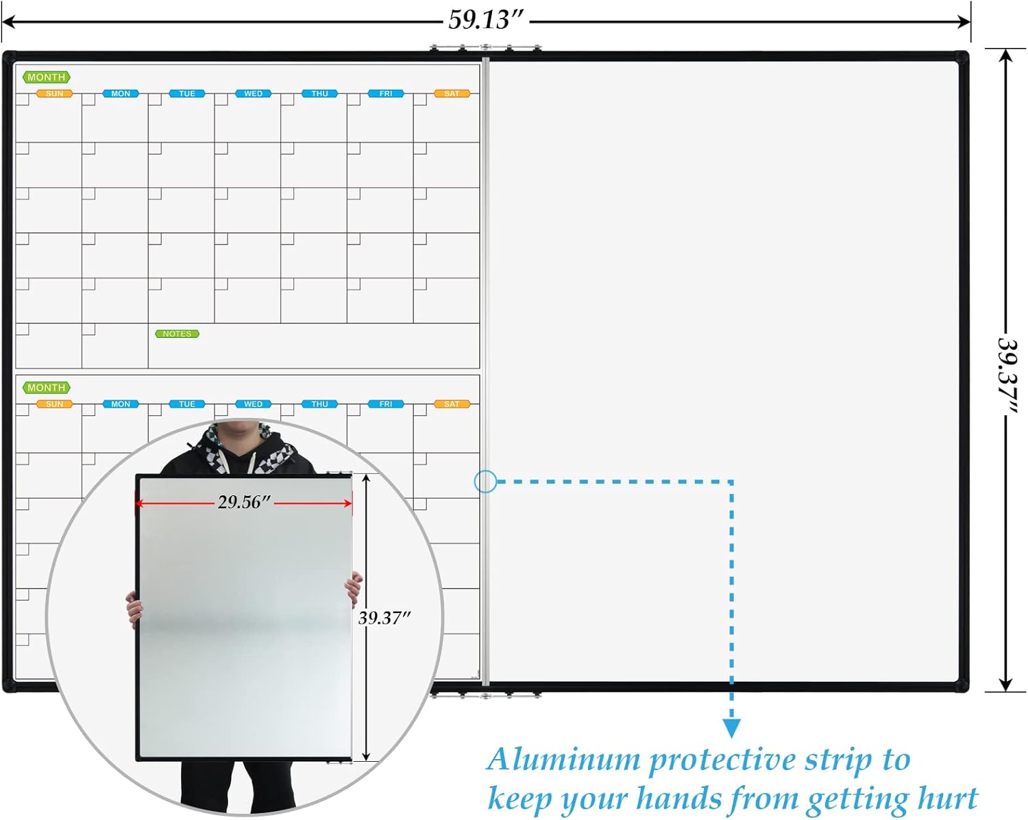 JILoffice Magnetic Foldable Dry Erase Calendar Whiteboard Combo, 2 Month Calendar Board & White Board 60 X 40 Inch, Black Aluminum Frame Wall Mounted Board for Office Home and School